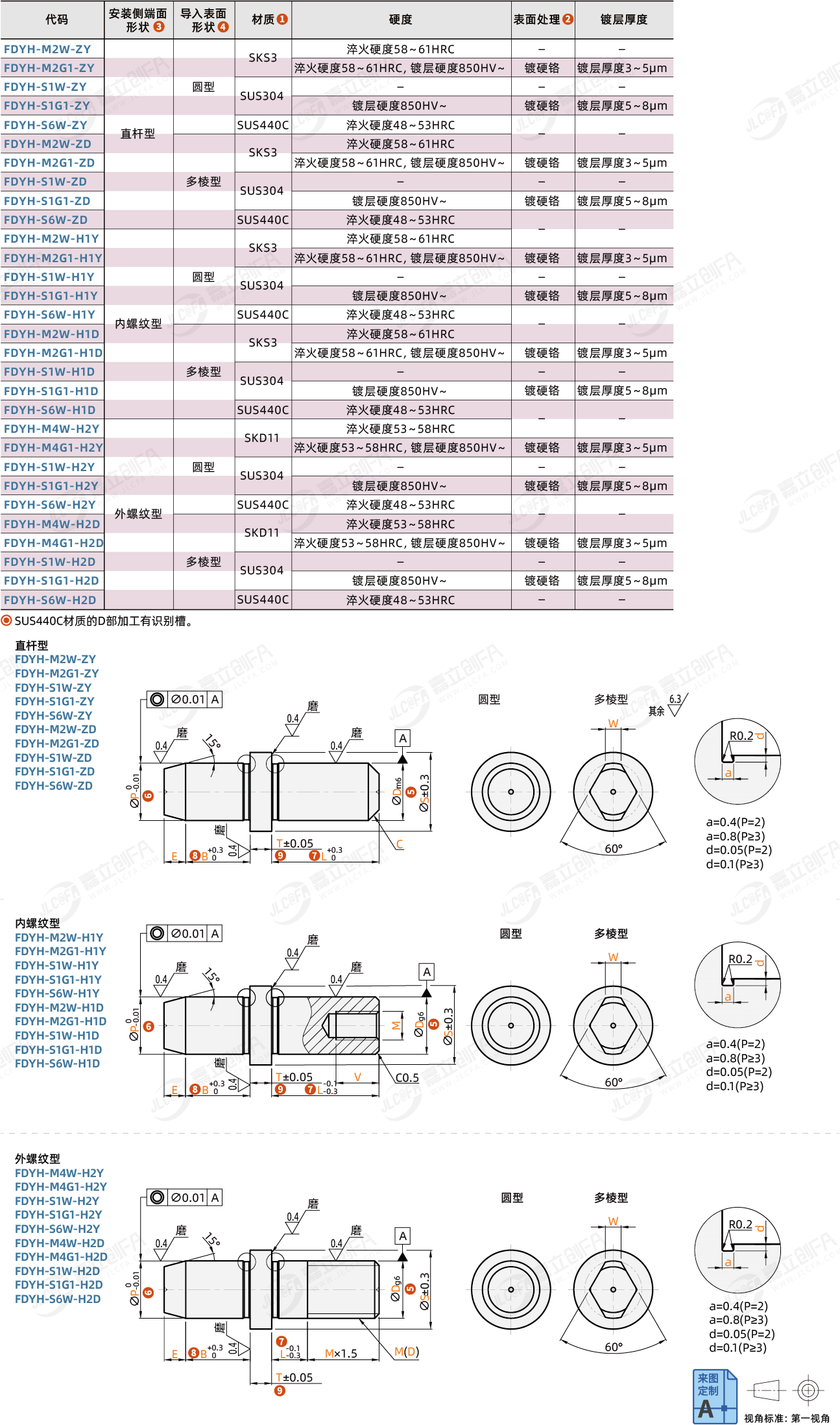 注:SUS440C材质的D部加工有识别槽。
