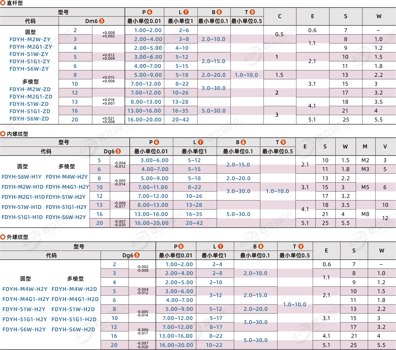 FDYH-M2W-H1Y内螺纹型圆型SKS3淬火硬度58~61HRC