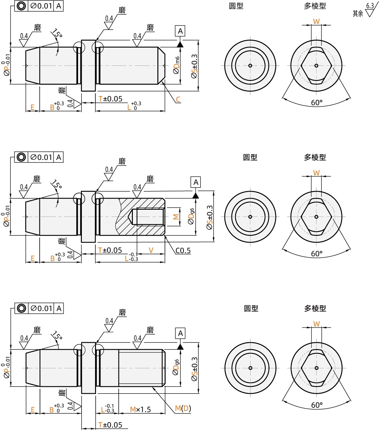 特点2:导入部为锥角形的标准类型。压入使用,可指定压入部公差:m6、p6、g6。