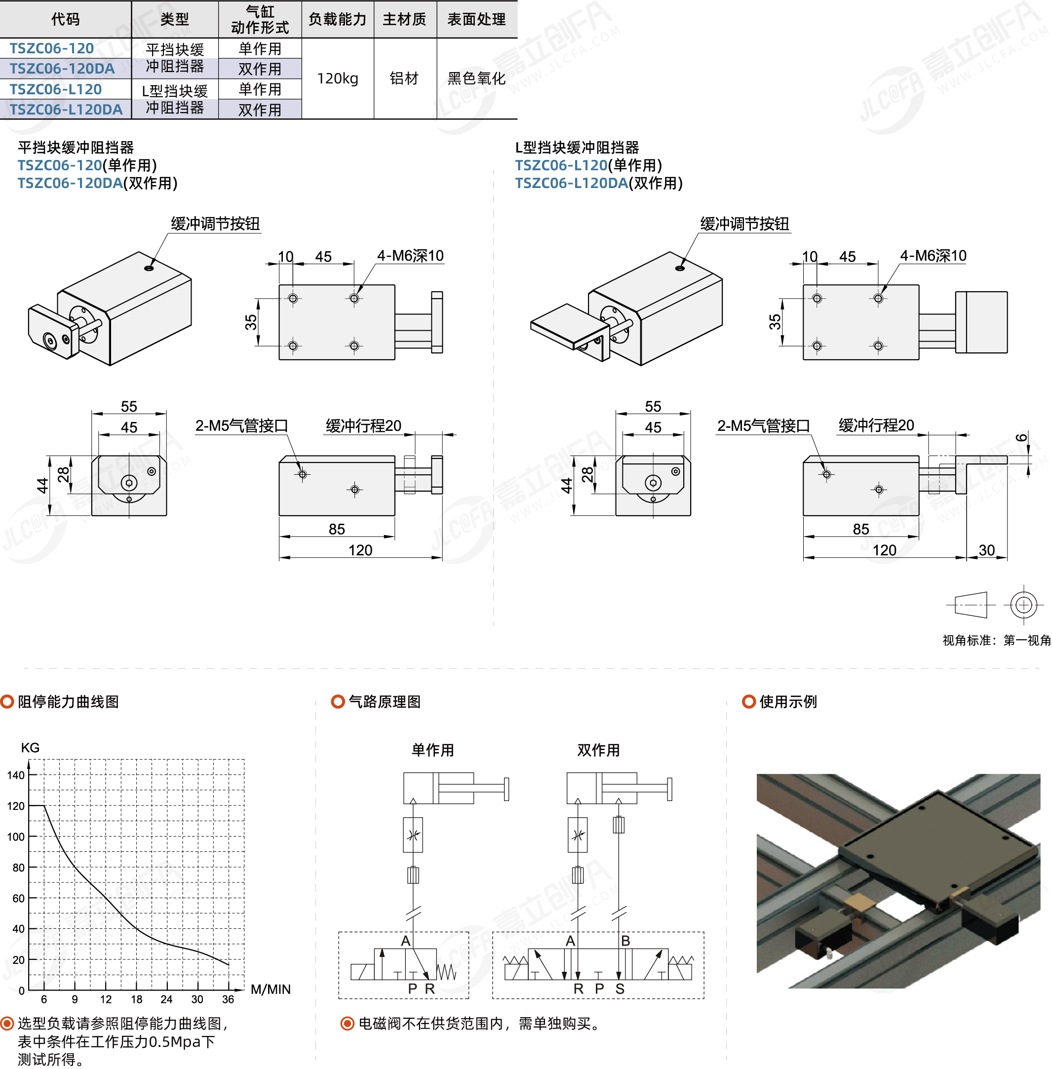 转角缓冲阻挡器 负载能力120kg 平挡块/L型挡块 不耐高温 黑色氧化处理