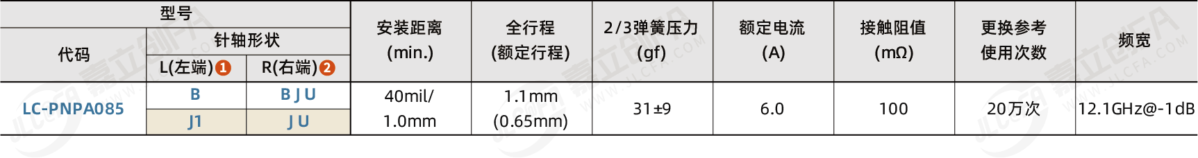 种类: IC测试用产品名称: 双头探针类型: 85系列最小安装中心距: 40mil/1.0mm最大行程(mm): 1.1