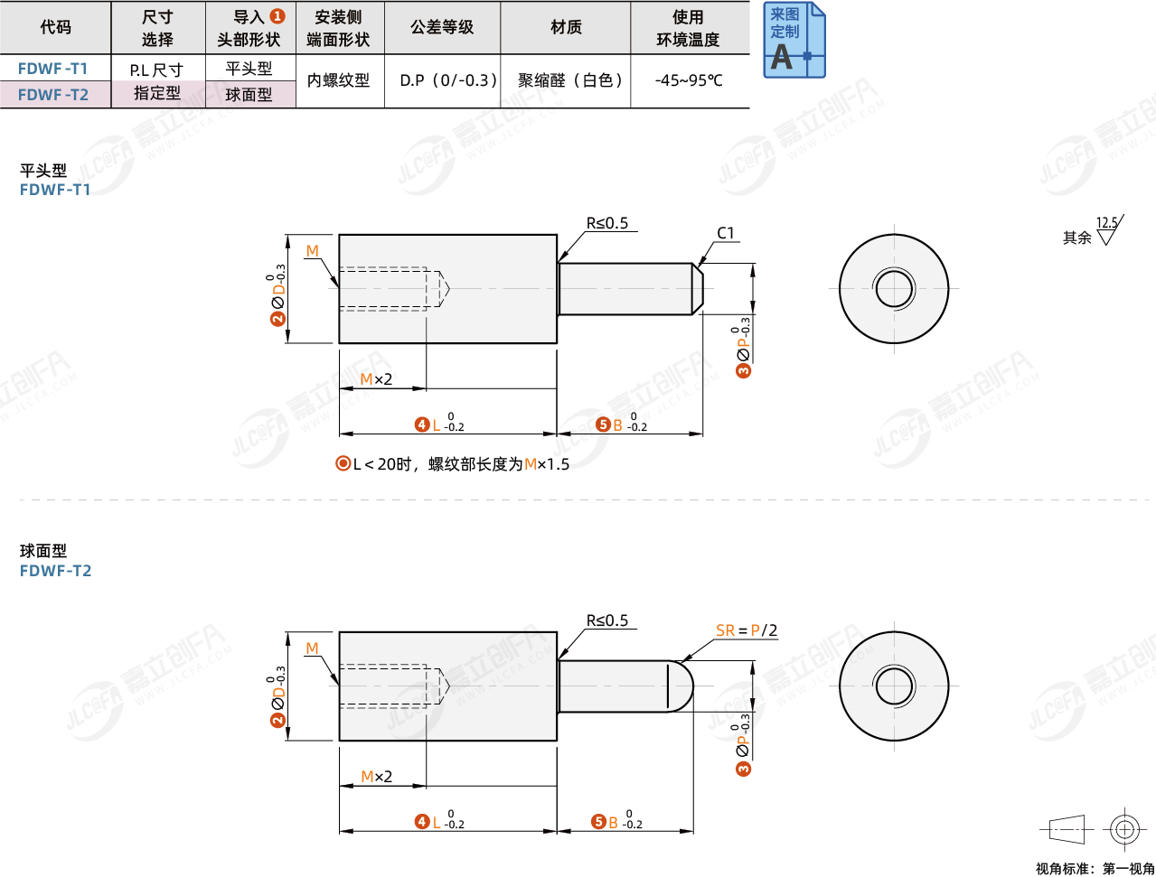 种类: 树脂定位销形状: 台阶型安装侧端面形状: 内螺纹型肩部形状: 无肩型尺寸选择: P.L尺寸指定型材质: 聚缩醛公差等级: D.P(0/-0.3)