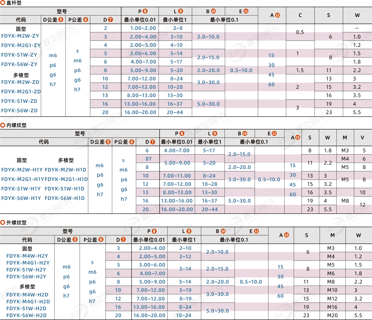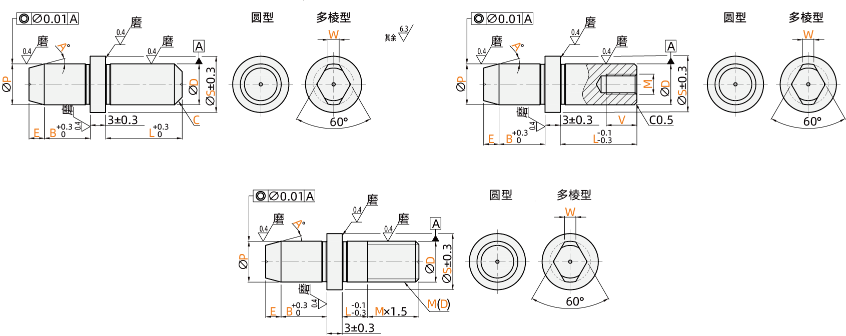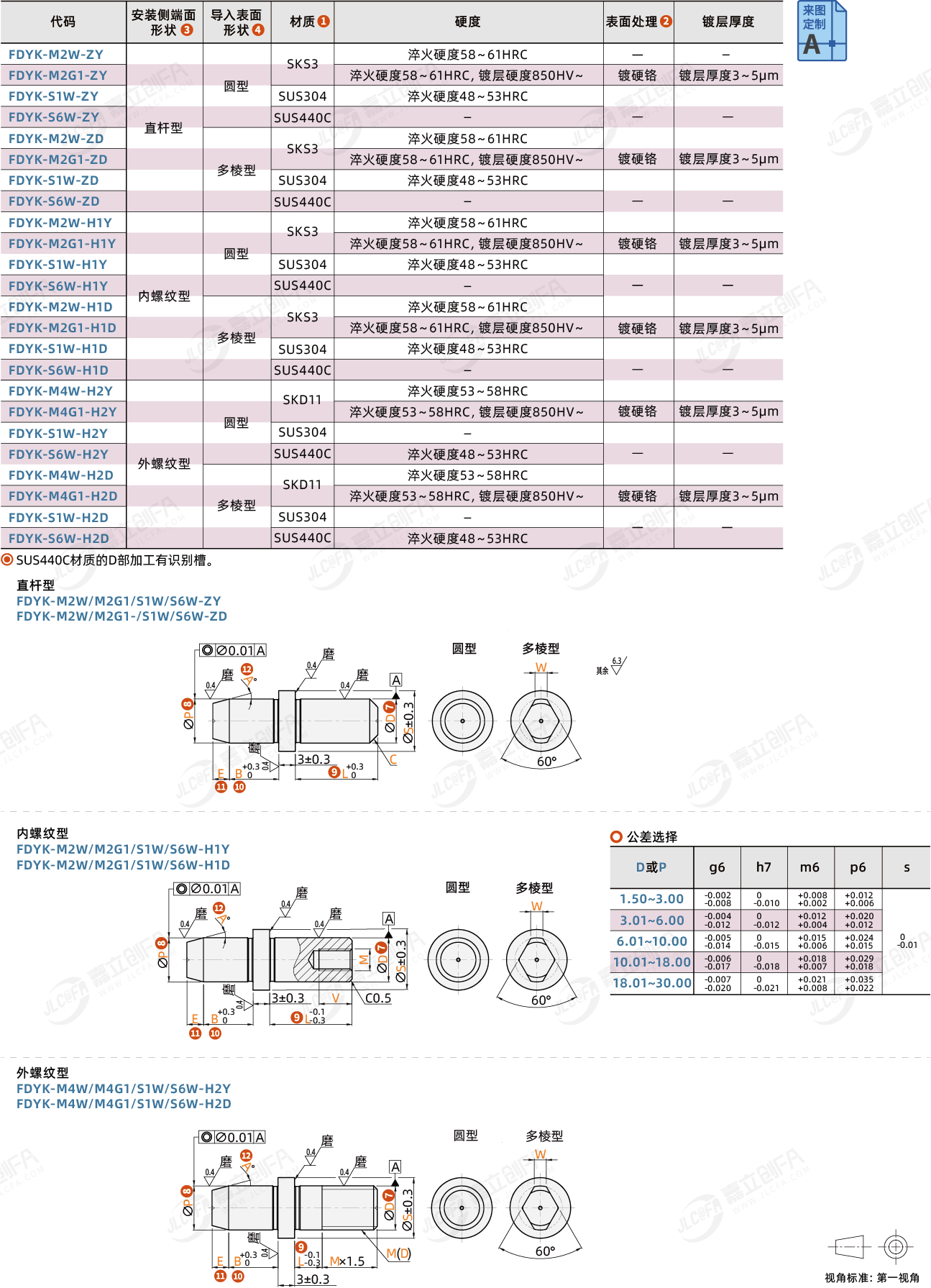 特点2:导入部为锥角形的标准类型。压入使用,可指定压入部公差:m6、p6、g6。