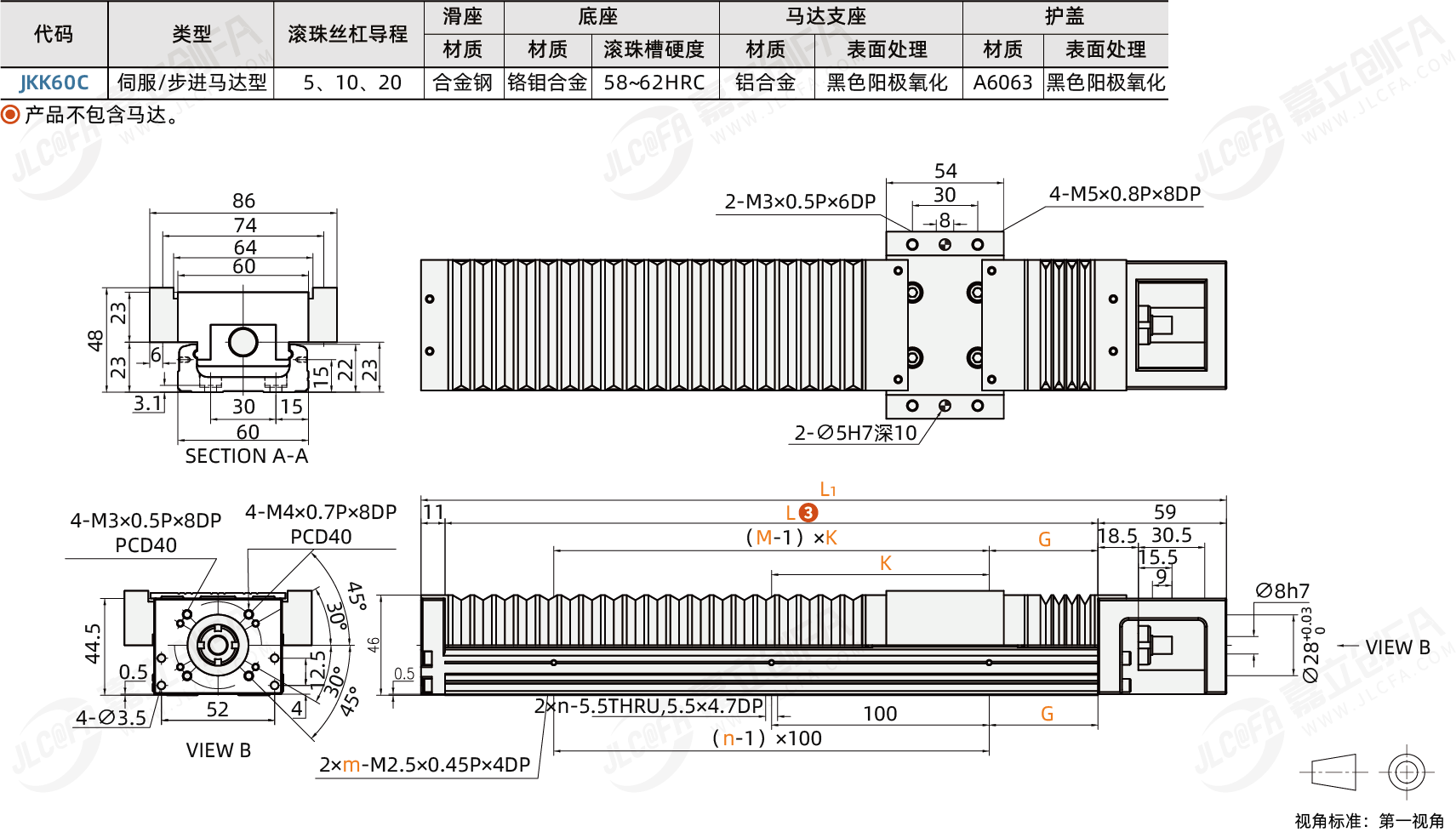 种类: KK模组系列: KK60系列 风琴罩防护型 电机直连底座宽度: 60mm类型: 风琴罩防护型电机安装方式: 直连