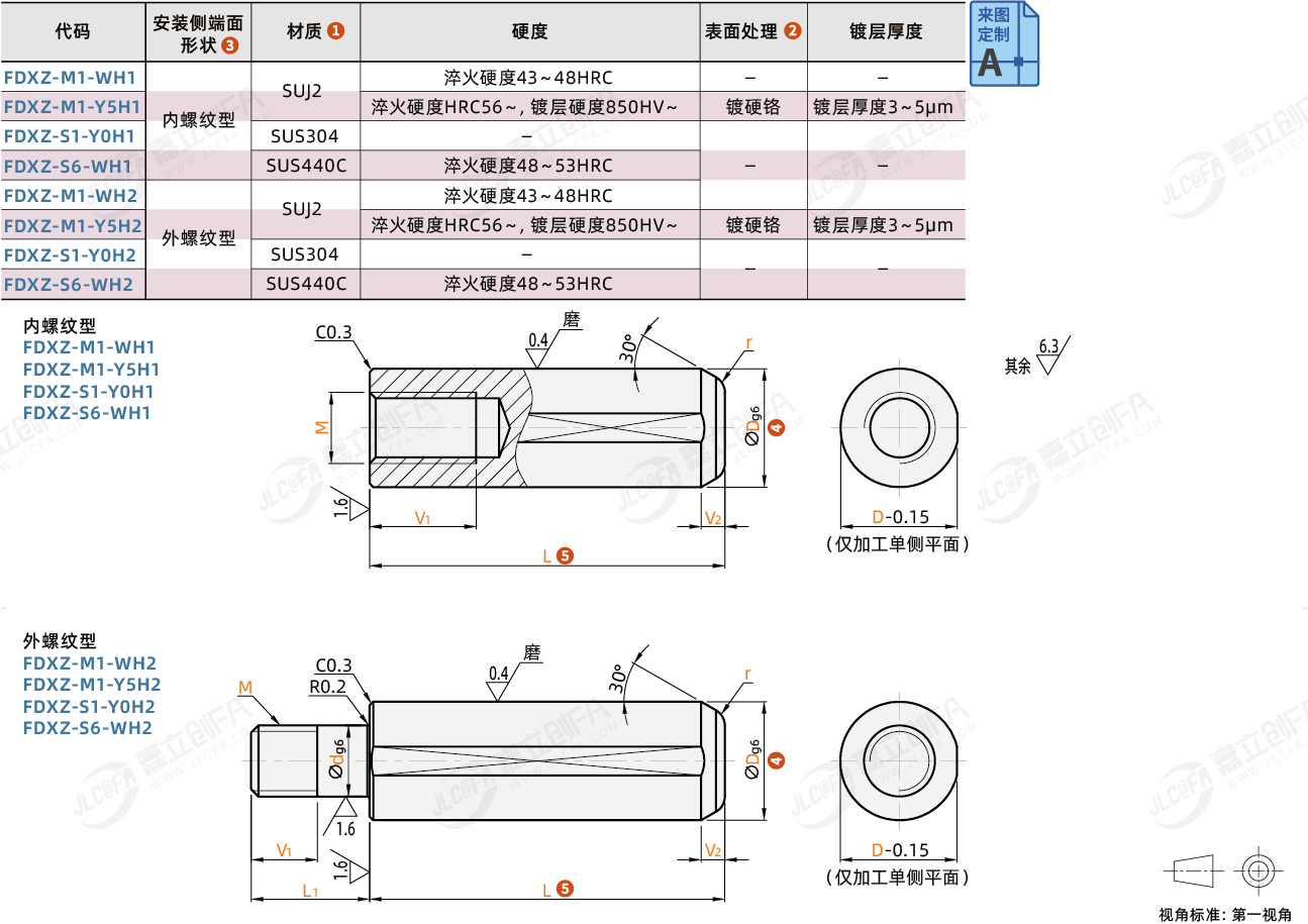 FDXZ-M1-WH2外螺纹型SUJ2淬火硬度43~48HRC