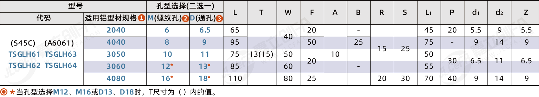 适用铝型材规格