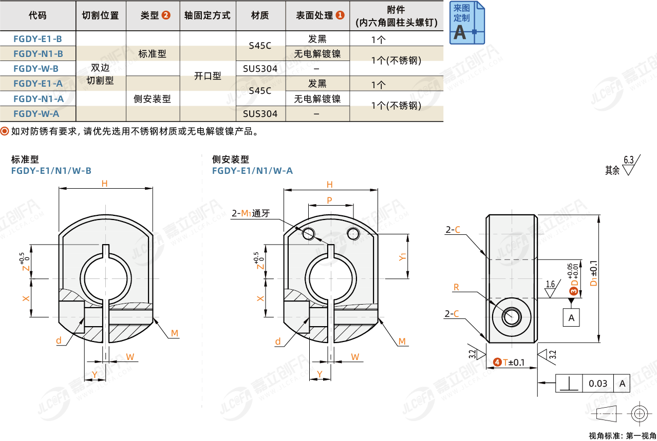 | FGDY-E1-A | 侧安装型 | S45C | 发黑 | 1个 | ||