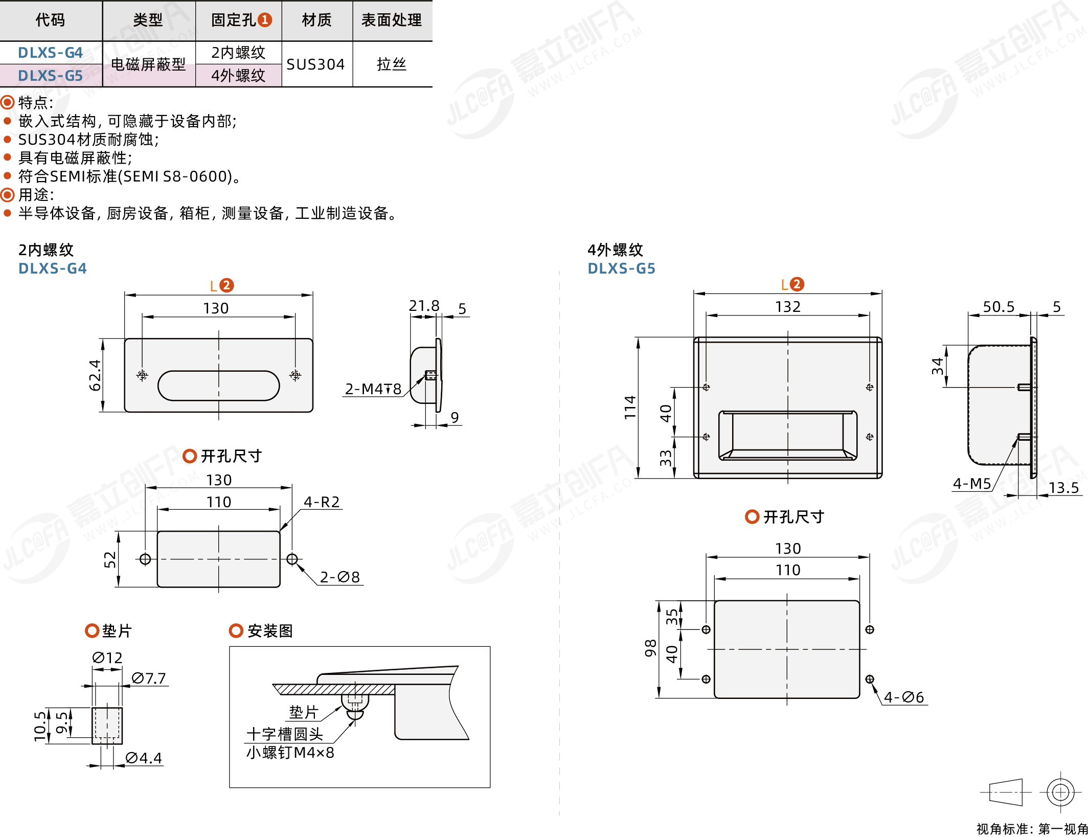 暗式拉手 电磁屏蔽型 内装型 SUS304 表面拉丝