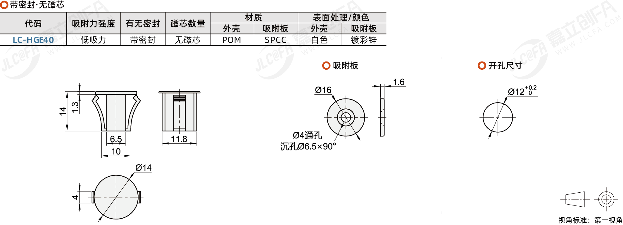 种类: 快速安装磁力扣类型: 快速安装型有无密封: 带密封外壳材质: POM吸附力强度: 低吸力吸附力方向: 正面磁芯数量: 颜色: 白色吸附板材质: SPCC吸附板表面处理: 镀彩锌