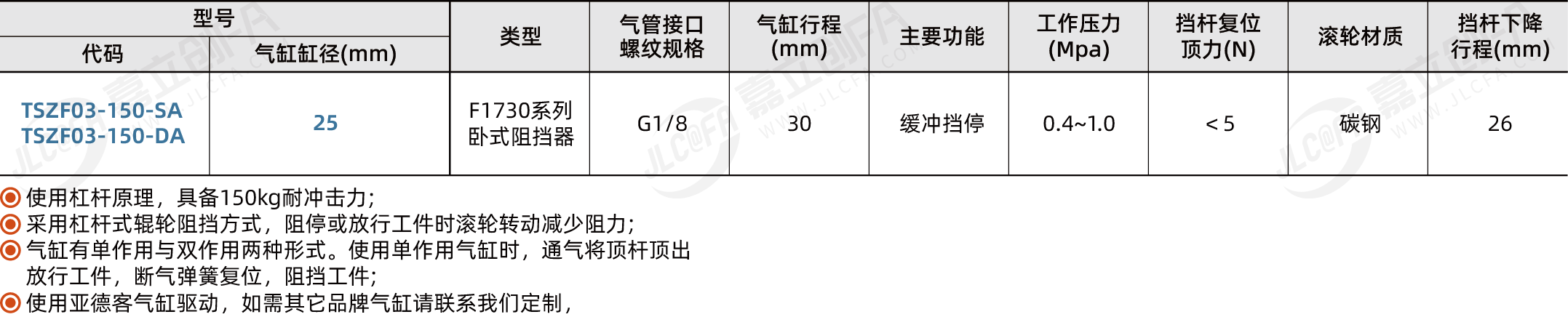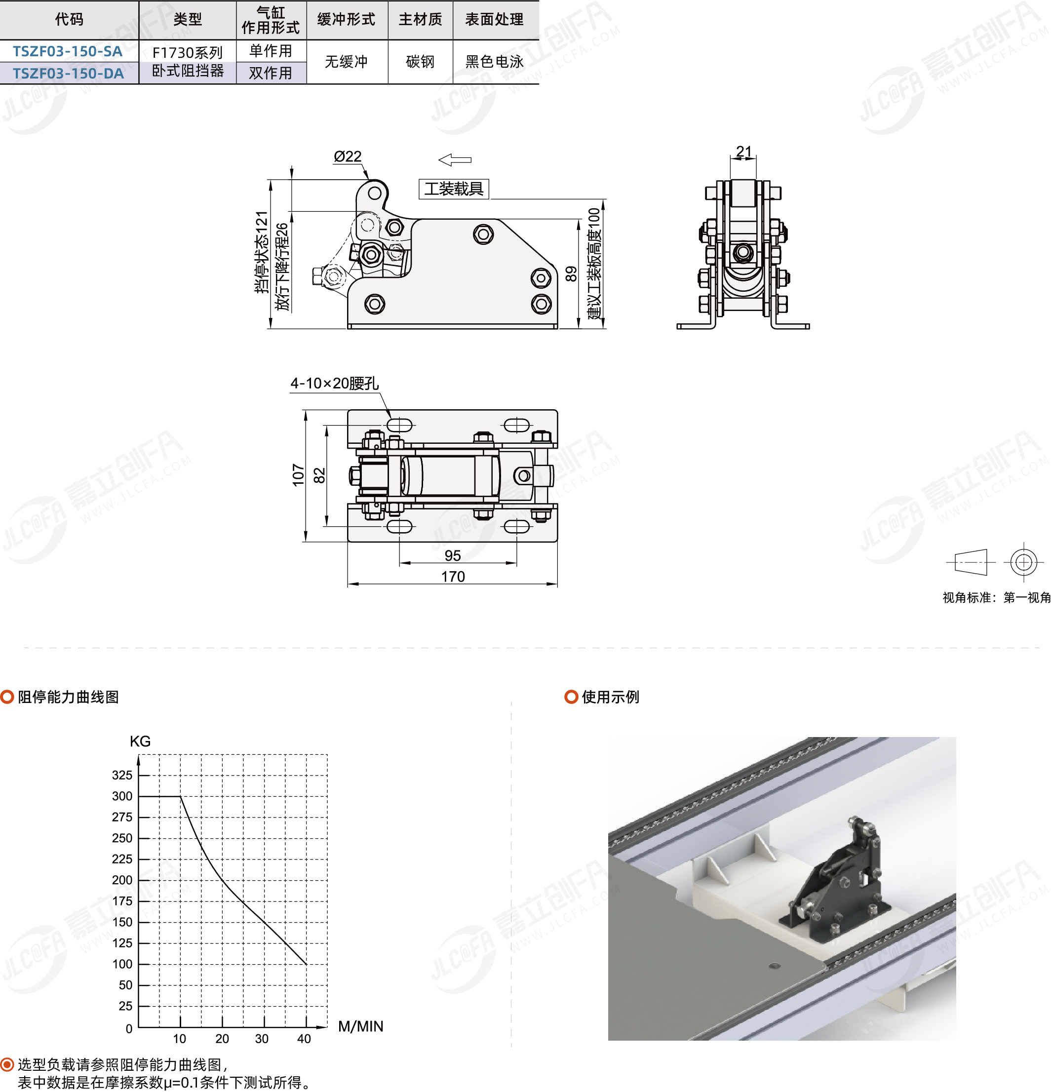 F1730系列卧式阻挡器 负载能力150kg 无缓冲 不耐高温 黑色电泳处理 碳钢材质