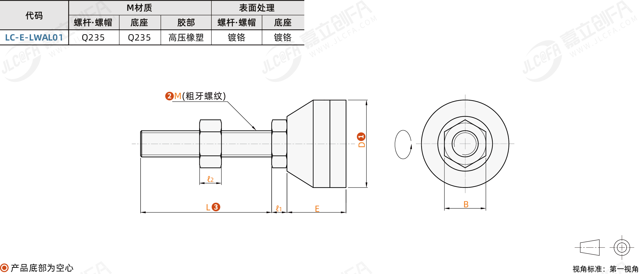 种类: 金属+塑料底座脚杯类型: 固定调节型底座形状 特征: 圆形带胶垫底座材质: S45C螺杆材质: S45C底座表面处理: 镀铬螺杆表面处理: 镀铬材质: S45C螺纹: 粗牙