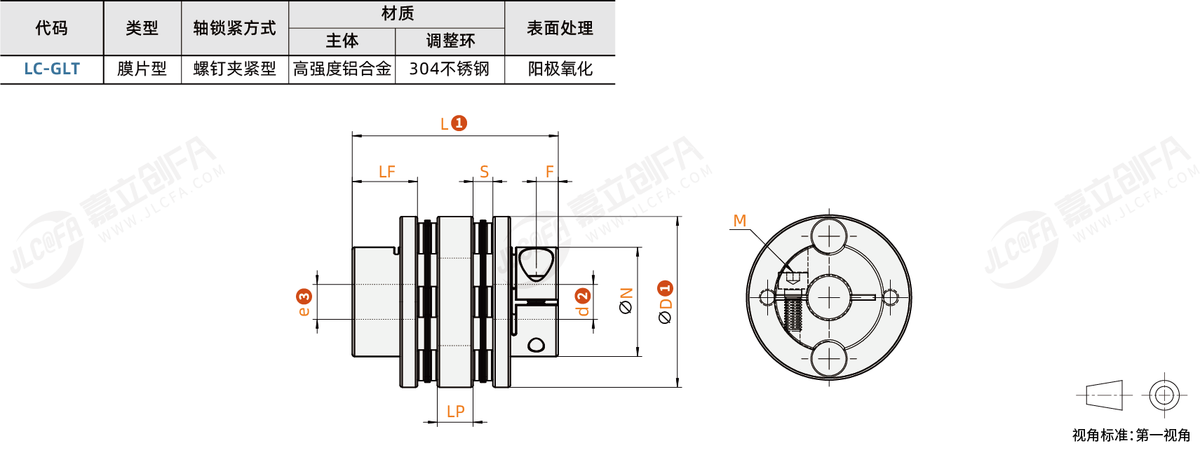 类型: 膜片型轴锁紧方式: 螺钉夹紧型主体材质: 高强度铝合金调整环材质: 304不锈钢表面处理: 阳极氧化