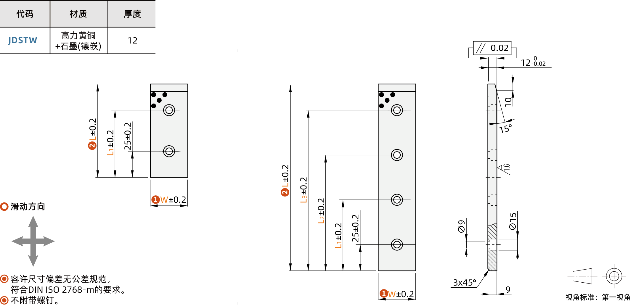 自润滑滑板 -铜合金12mm VDI3357-