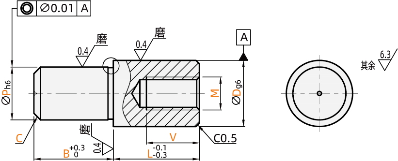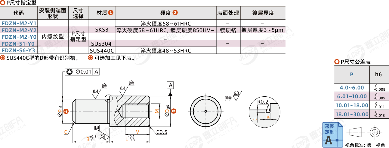 特点2:导入部为锥角形的标准类型。压入使用,可指定压入部公差:m6、p6、g6。