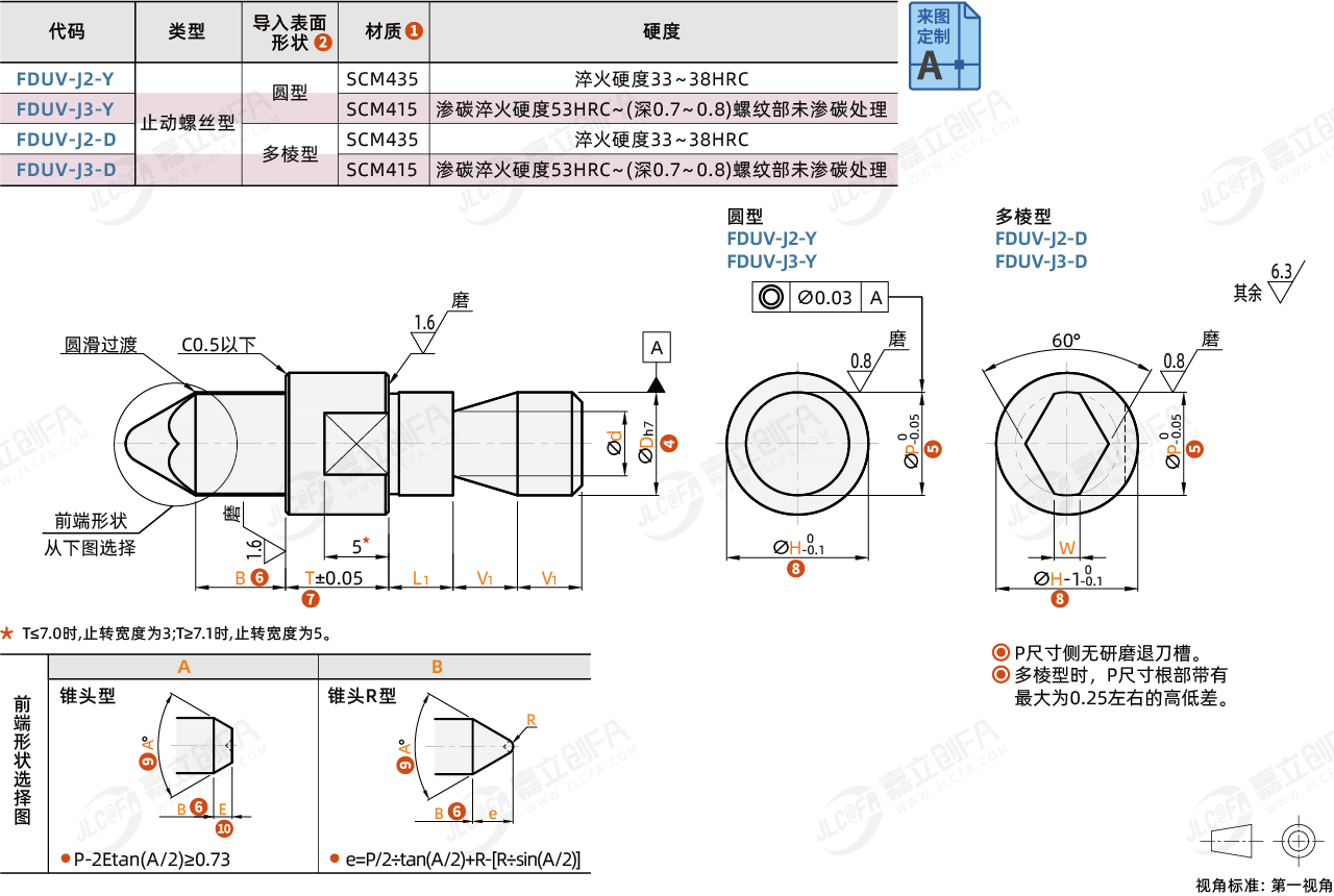 种类: 高度支承销导入头部形状: 前端形状选择型导入侧端面形状: 安装侧端面形状: 止动螺丝型肩部形状: 带肩型