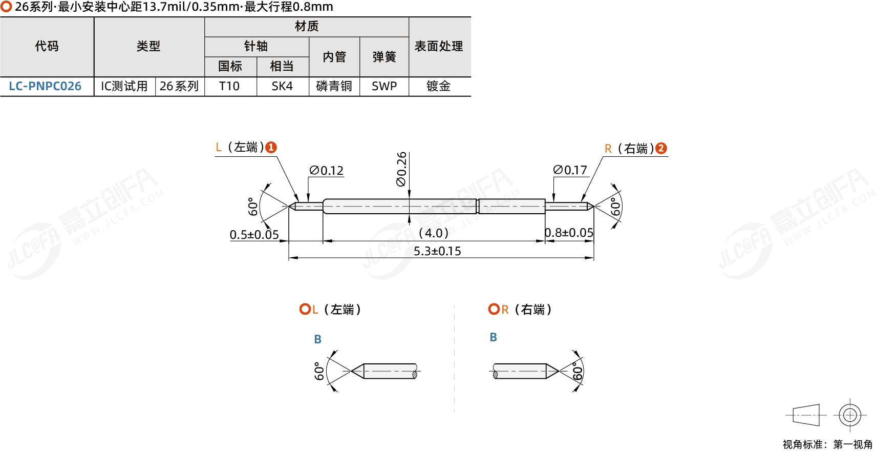 双头探针 IC测试用 26系列·最小安装中心距13.7mil/0.35mm·最大行程0.8mm