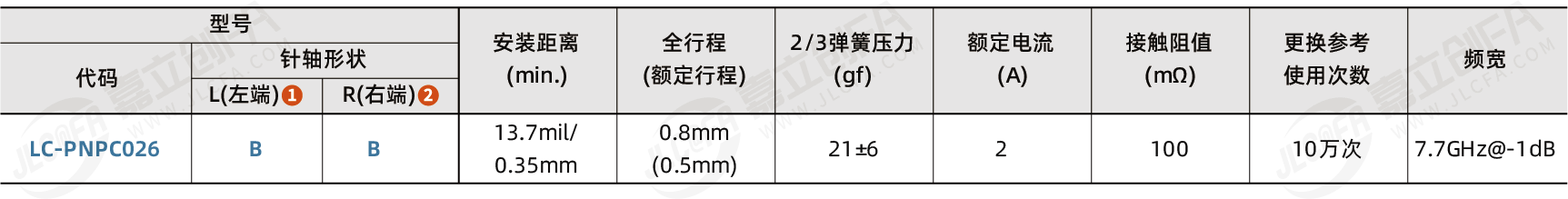 种类: IC测试用产品名称: 双头探针类型: 26系列最小安装中心距: 13.7mil/0.35mm最大行程(mm): 0.8