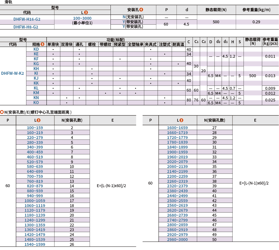 2. 表中承载为抽屉侧滑轨伸出时滑轨中部的静载荷