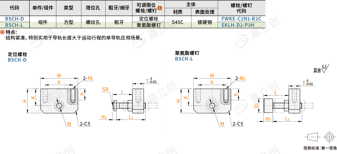 种类: 直线导轨配件直线导轨类型: 方型名称: 直线导轨用限位块限位孔: 螺纹孔单件/组件: 组件粗牙/细牙: 粗牙表面处理: 镀硬铬主体材质: S45C