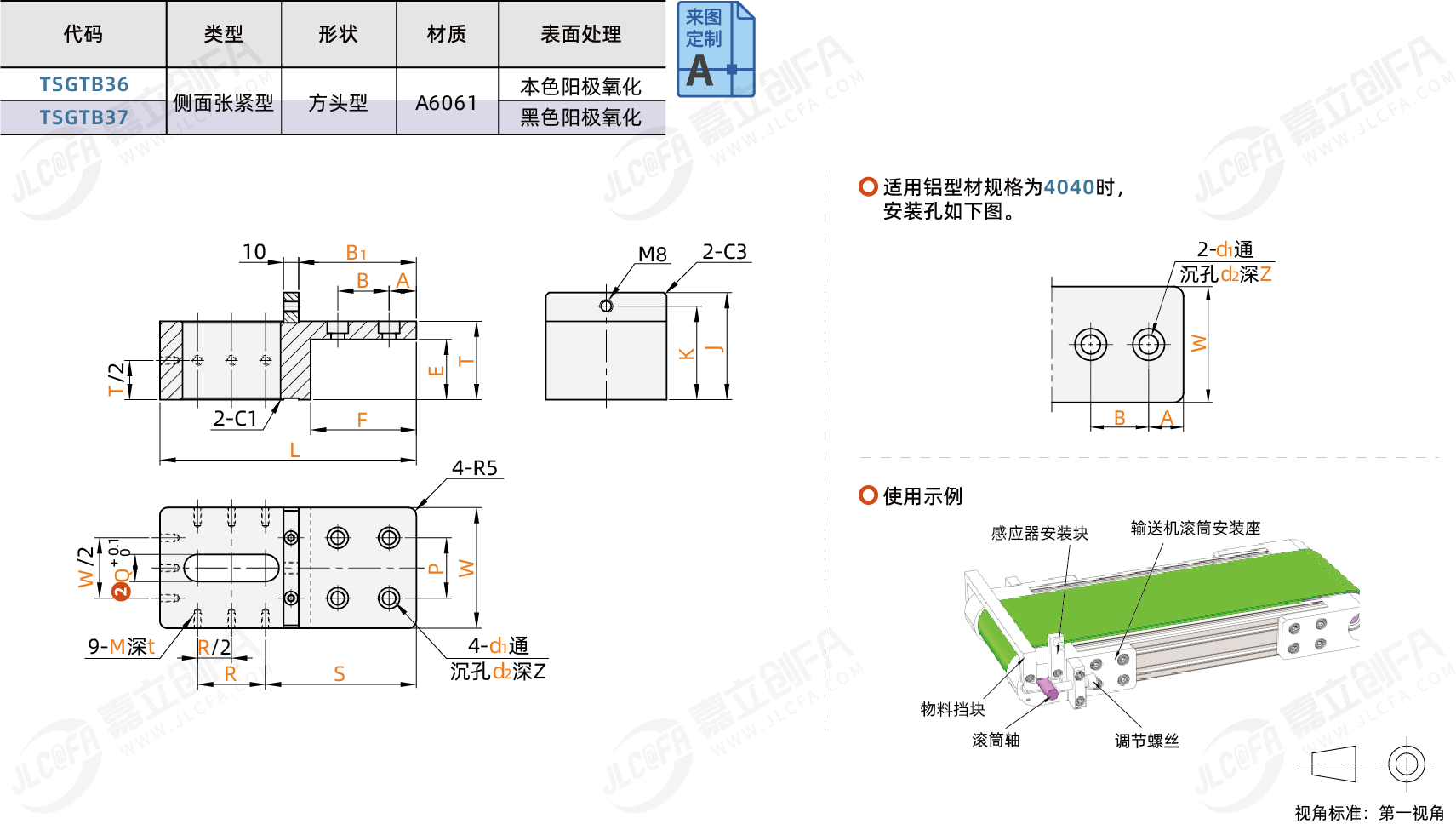种类: 输送滚筒安装座类型: 侧面张紧型材质: A6061形状: 方头型安装孔方向: 内侧定位方向: 标准型