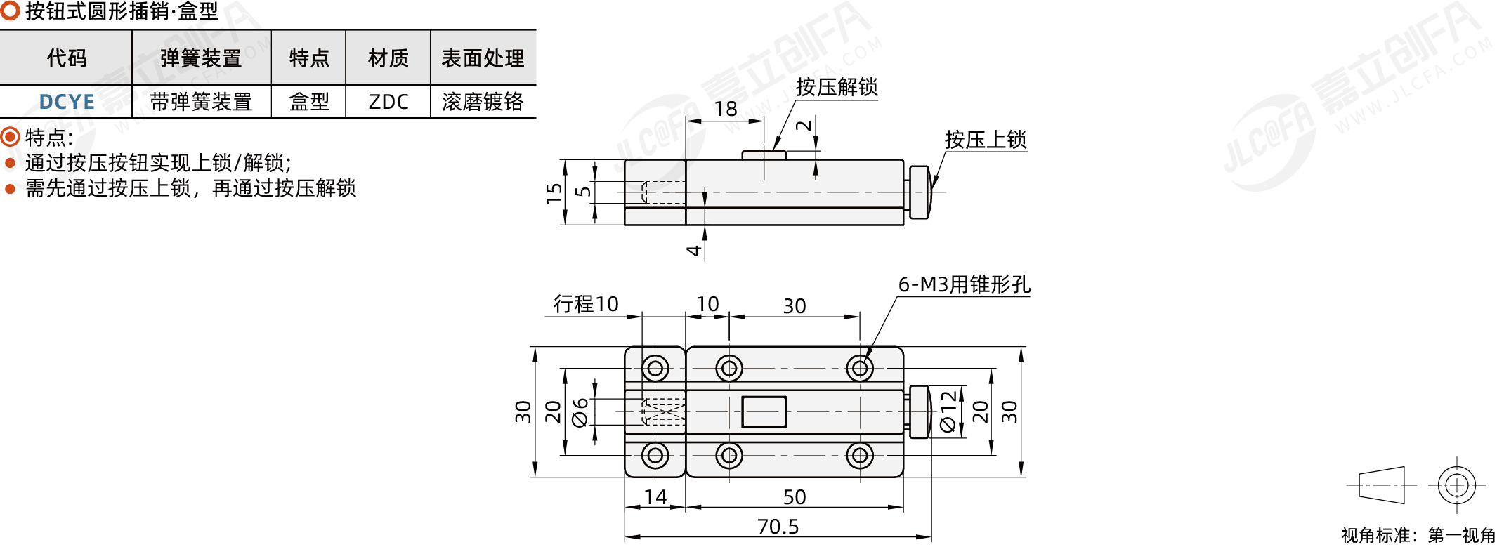 按钮式圆形插销 中程距离 带弹簧装置 盒型