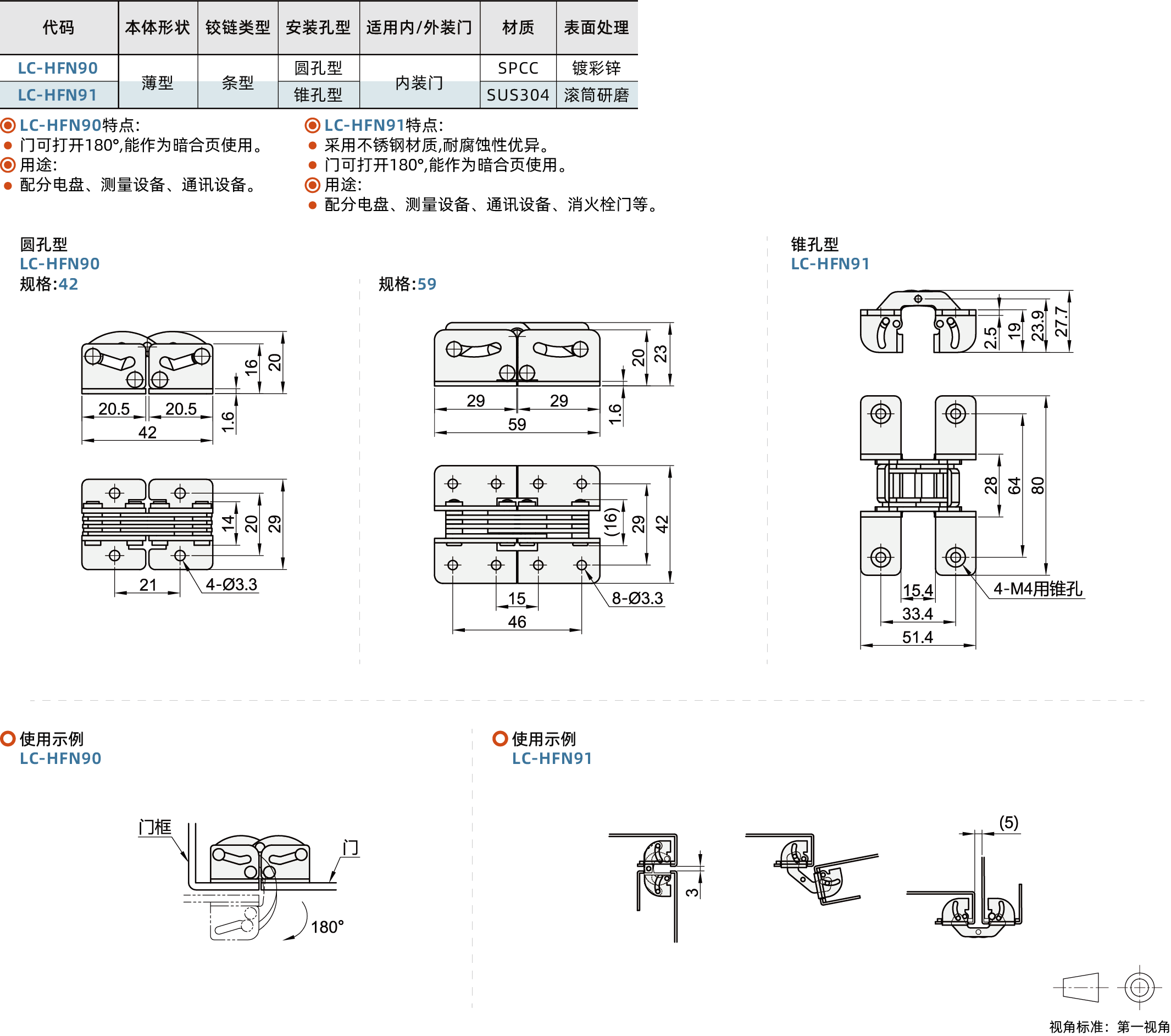 隐藏式铰链 条型 内装门 薄型 固定型