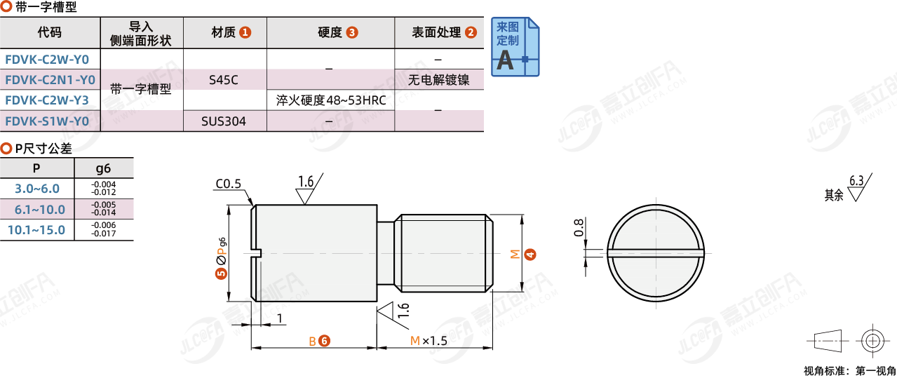 种类: 记号销导入侧端面形状: 带一字槽型导入表面形状: 圆型安装侧端面形状: 外螺纹型