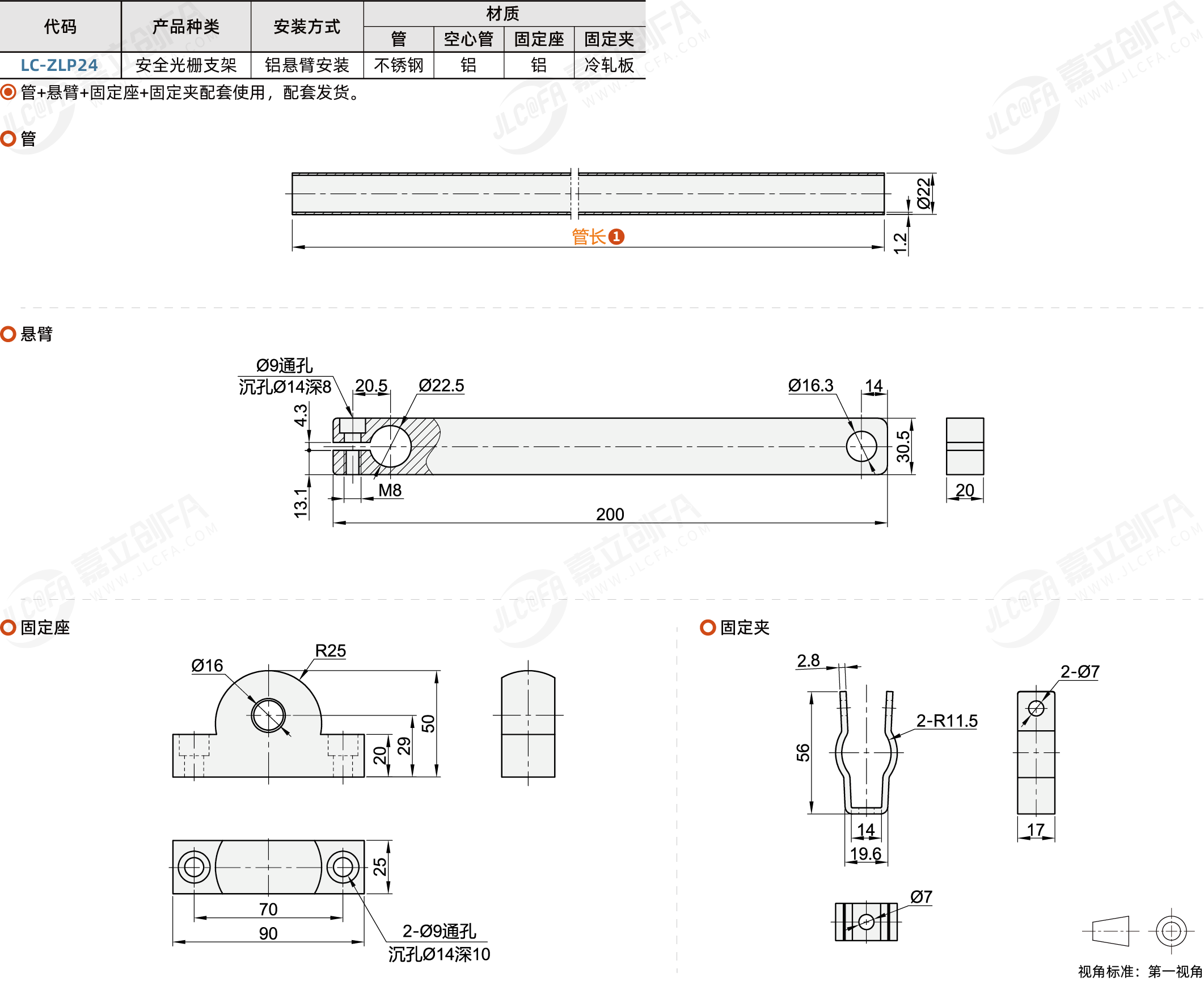 种类: 安全光栅支架安装方式: 铝悬臂安装空心管材质: 不锈钢悬臂材质: 固定座材质: 固定夹材质: 冷轧板