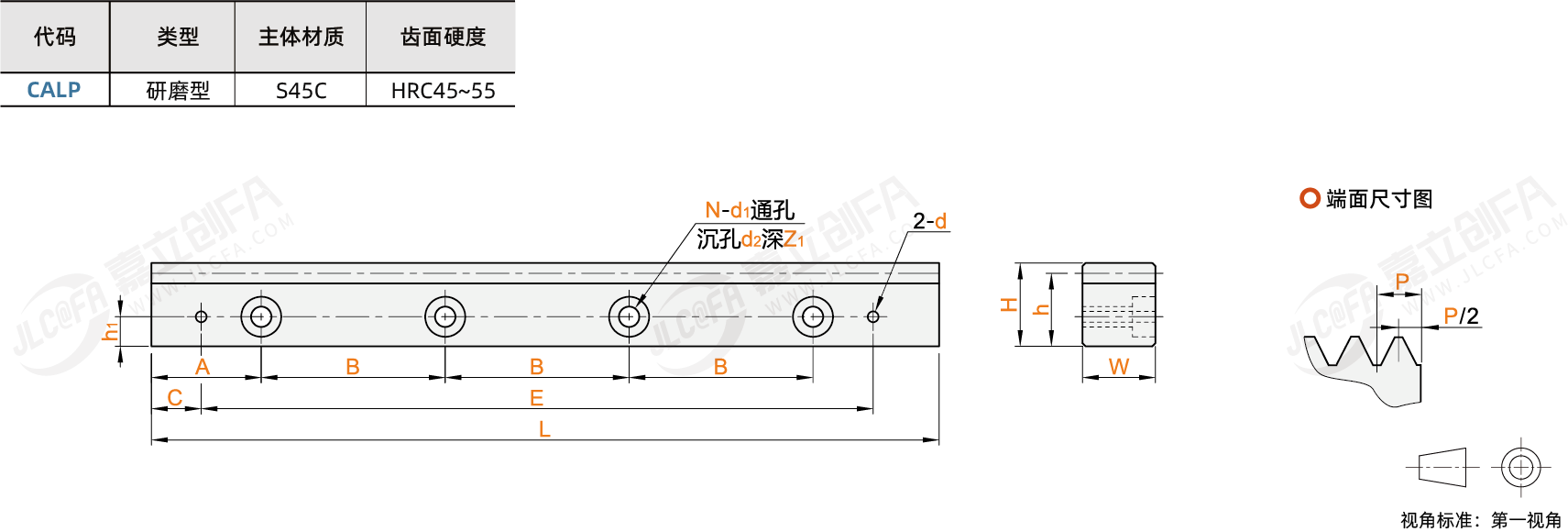 直齿条 研磨型 压力角20°
