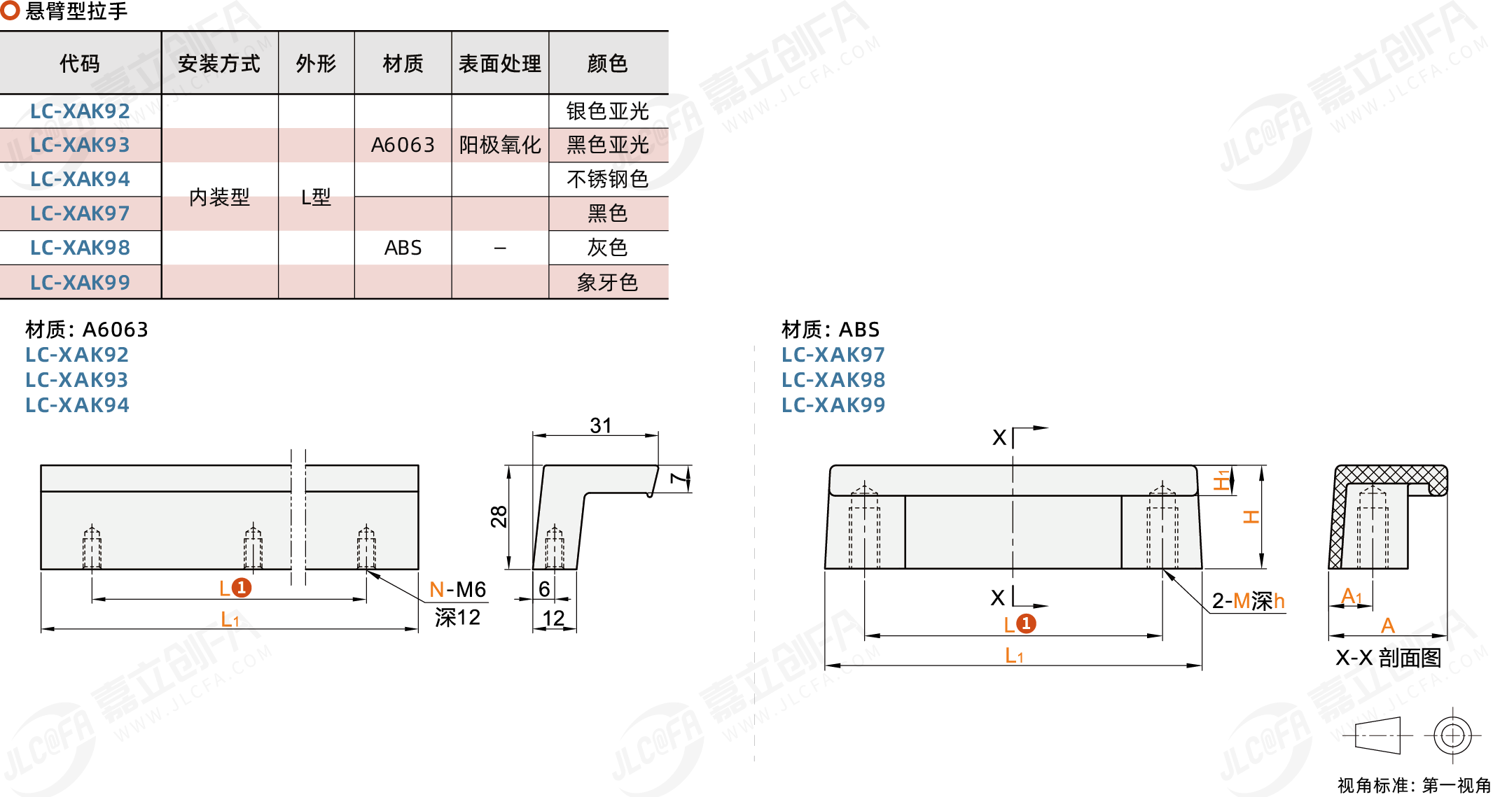 悬臂型拉手 内装型 L型