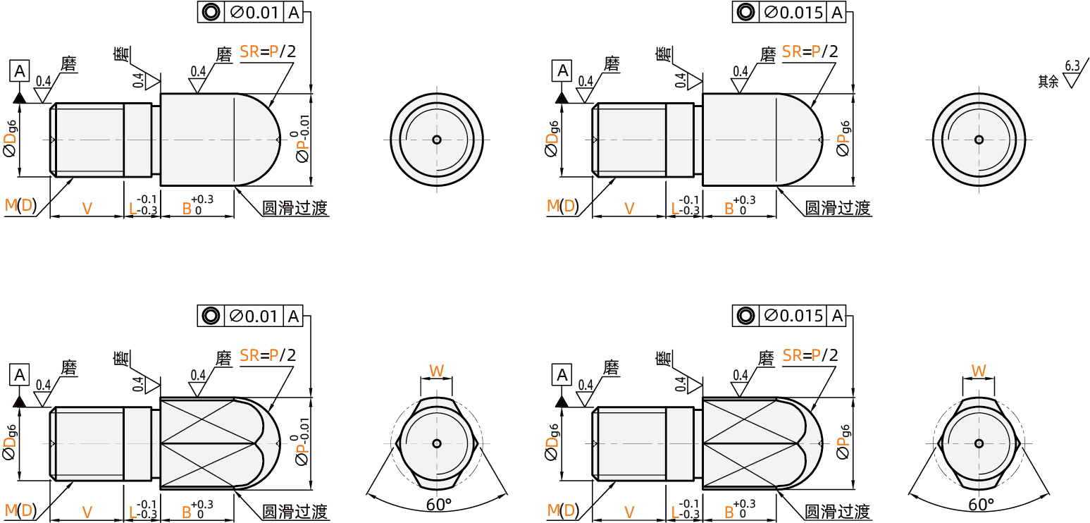特点2:导入部为锥角形的标准类型。压入使用,可指定压入部公差:m6、p6、g6。