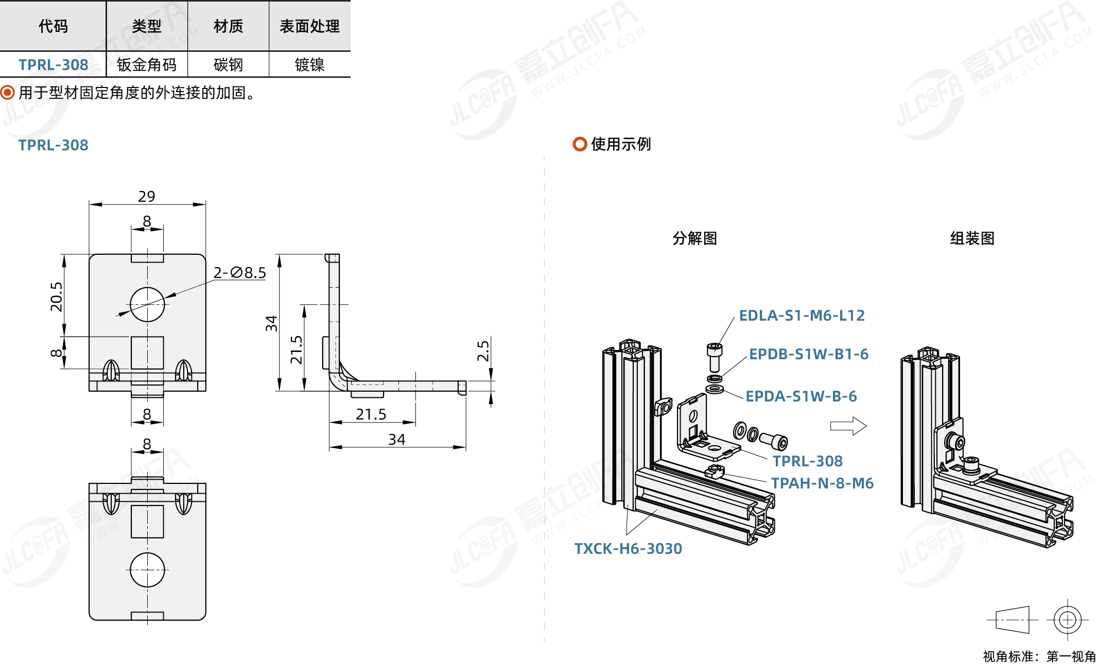 功能分类: 连接件适用型材系列: 欧标国标30/40槽8系列种类: 钣金角码槽宽: 8.2表面处理: 镀镍材质: 碳钢