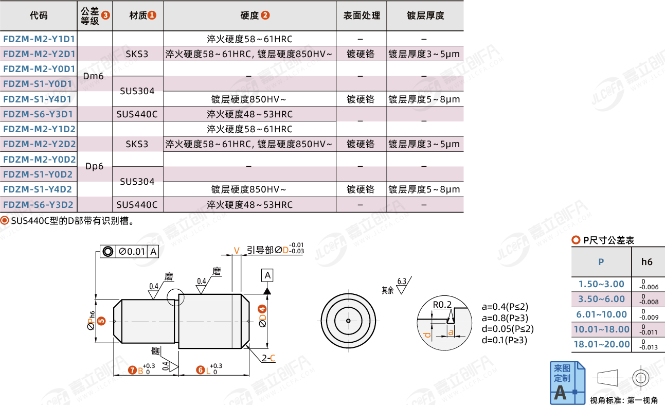 注:SUS440C材质的D部加工有识别槽。