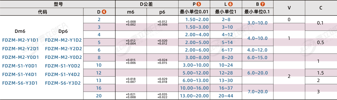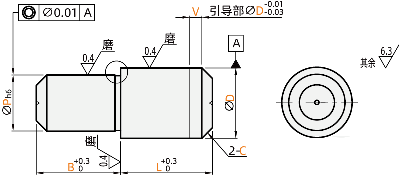 特点2:导入部为锥角形的标准类型。压入使用,可指定压入部公差:m6、p6、g6。
