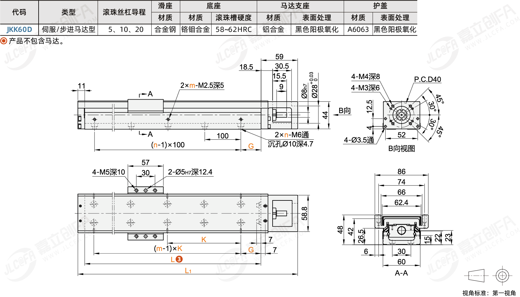 种类: KK模组系列: KK60系列 钣金护盖型 电机直连底座宽度: 60mm类型: 钣金盖防护型电机安装方式: 直连