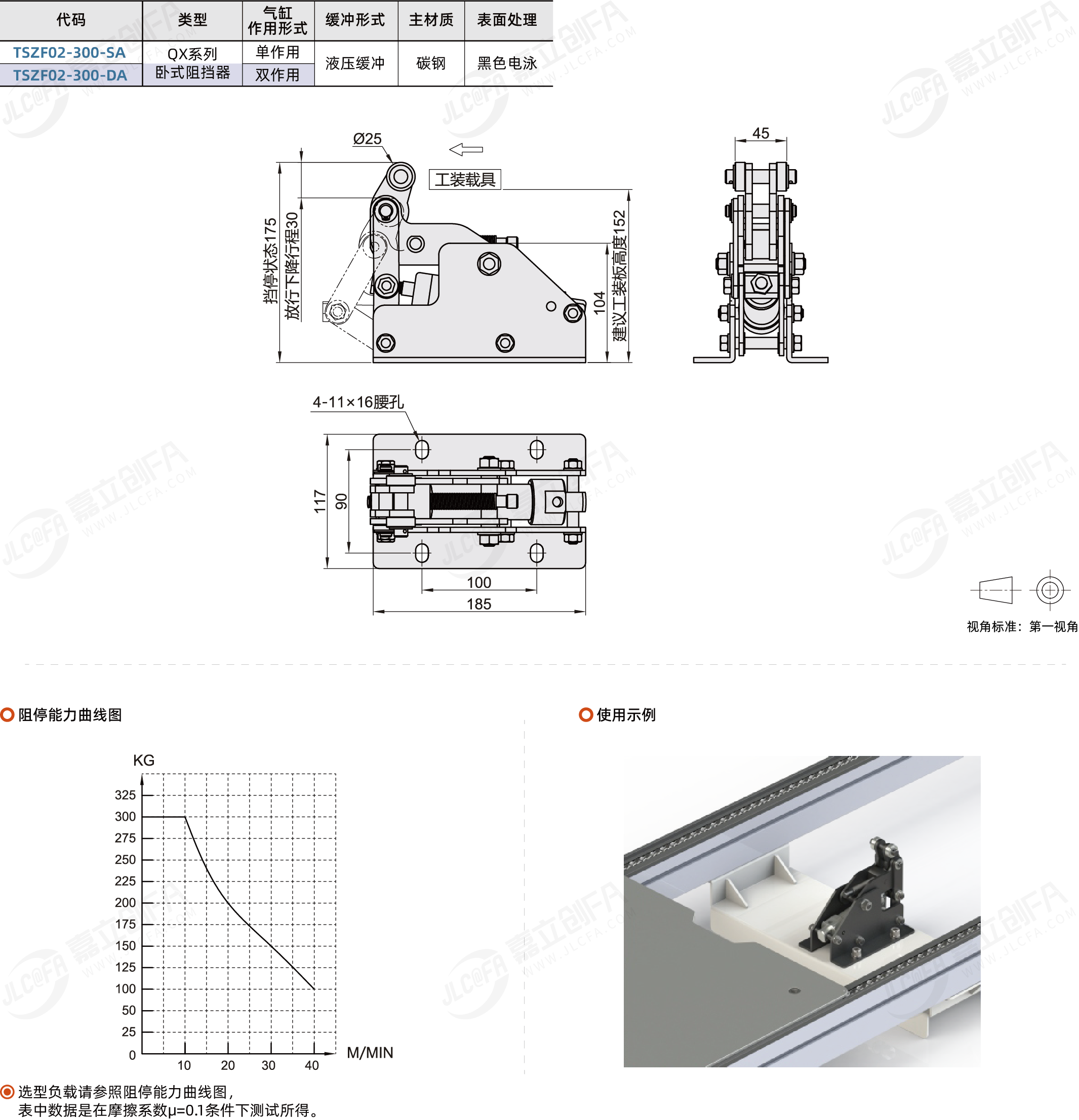 QX系列卧式阻挡器 负载能力300kg 液压缓冲 不耐高温 碳钢材质 黑色电泳处理