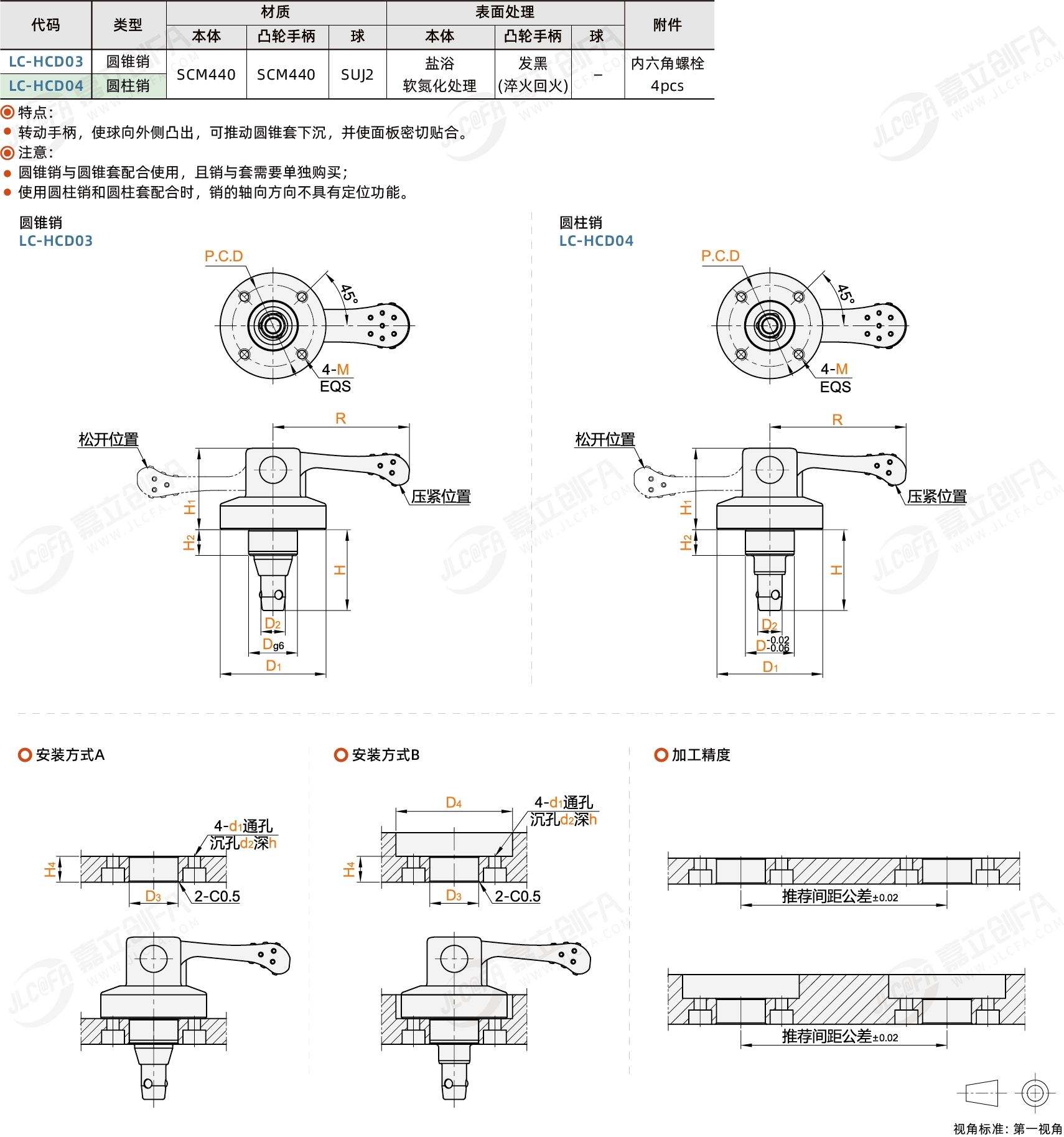 种类: 快速锁紧器主体材质: SCM440表面处理: 盐浴黑色处理旋钮材质: SCM440锁紧方式: 凸轮型