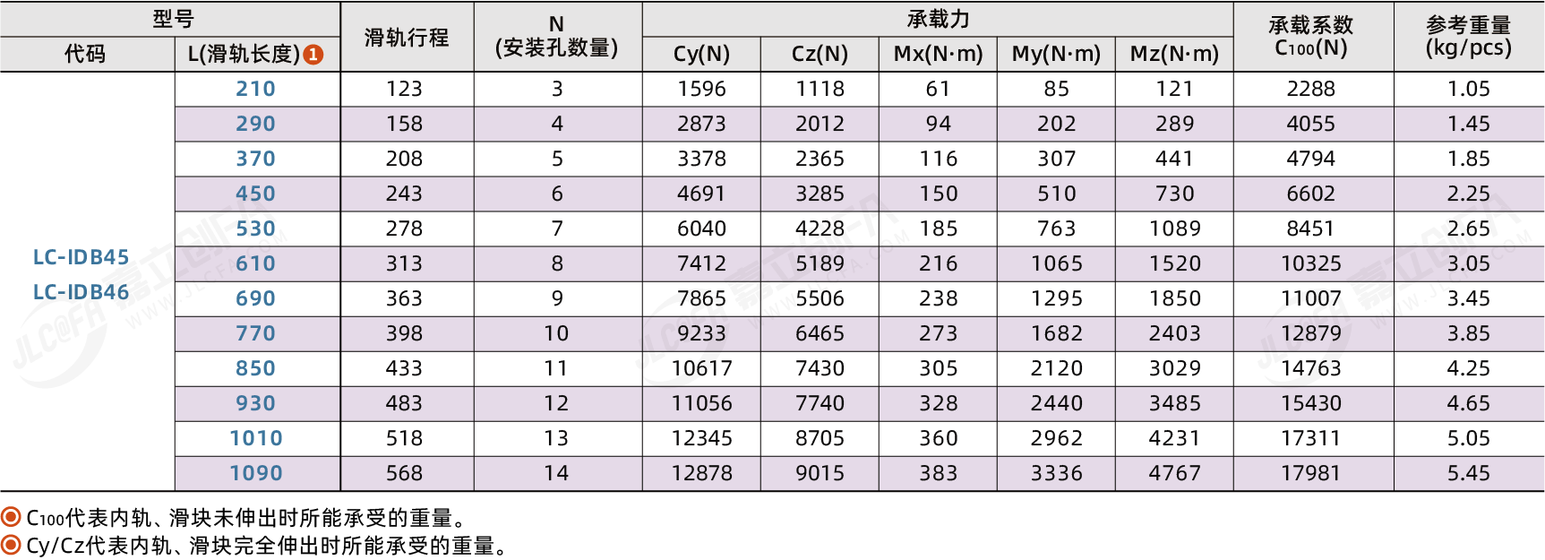 2. 表中承载为抽屉侧滑轨伸出时滑轨中部的静载荷