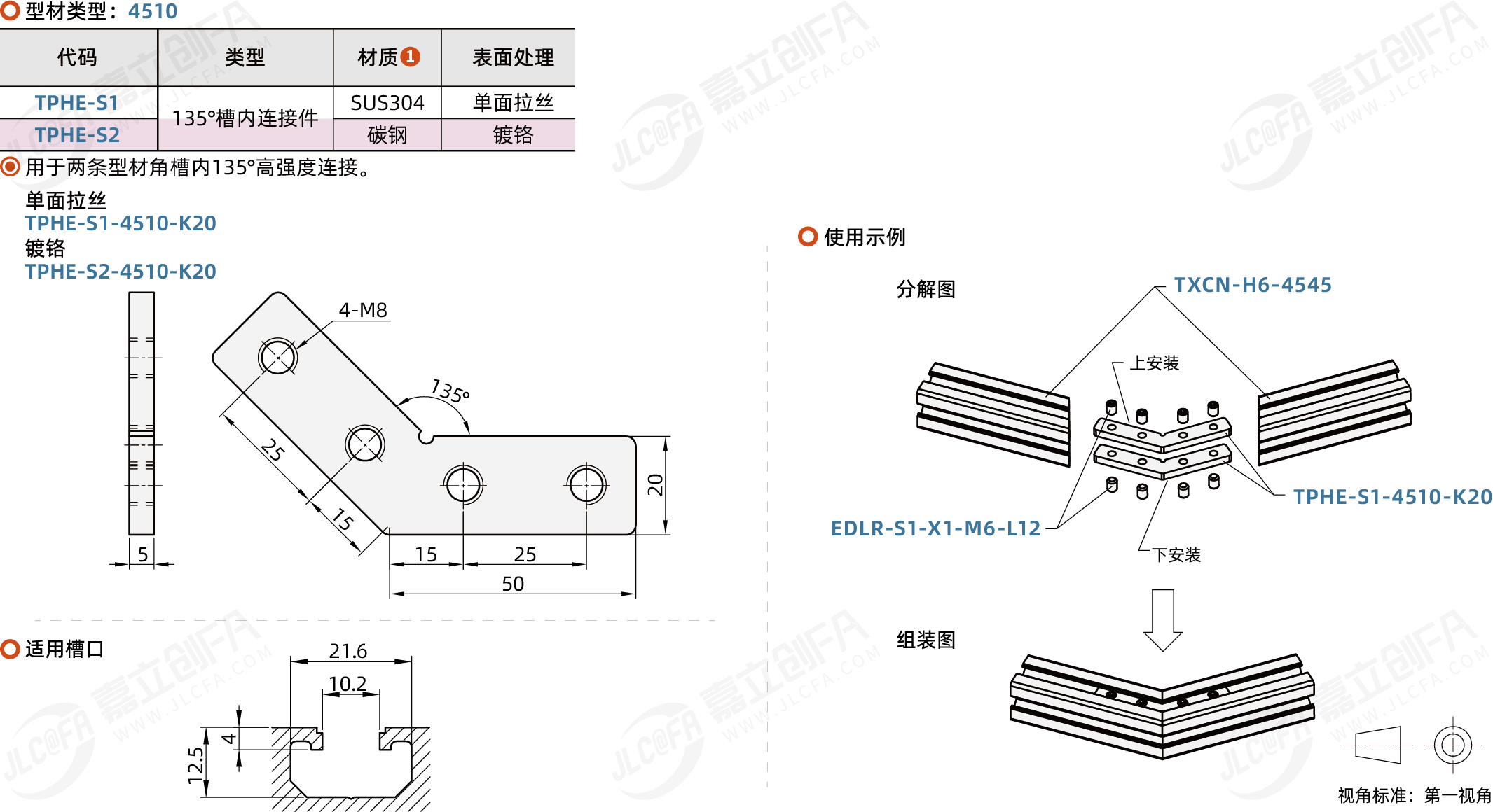 功能分类: 连接件适用型材系列: 欧标45系列种类: 135度槽内连接件表面处理: 镀铬