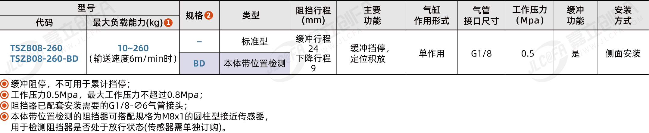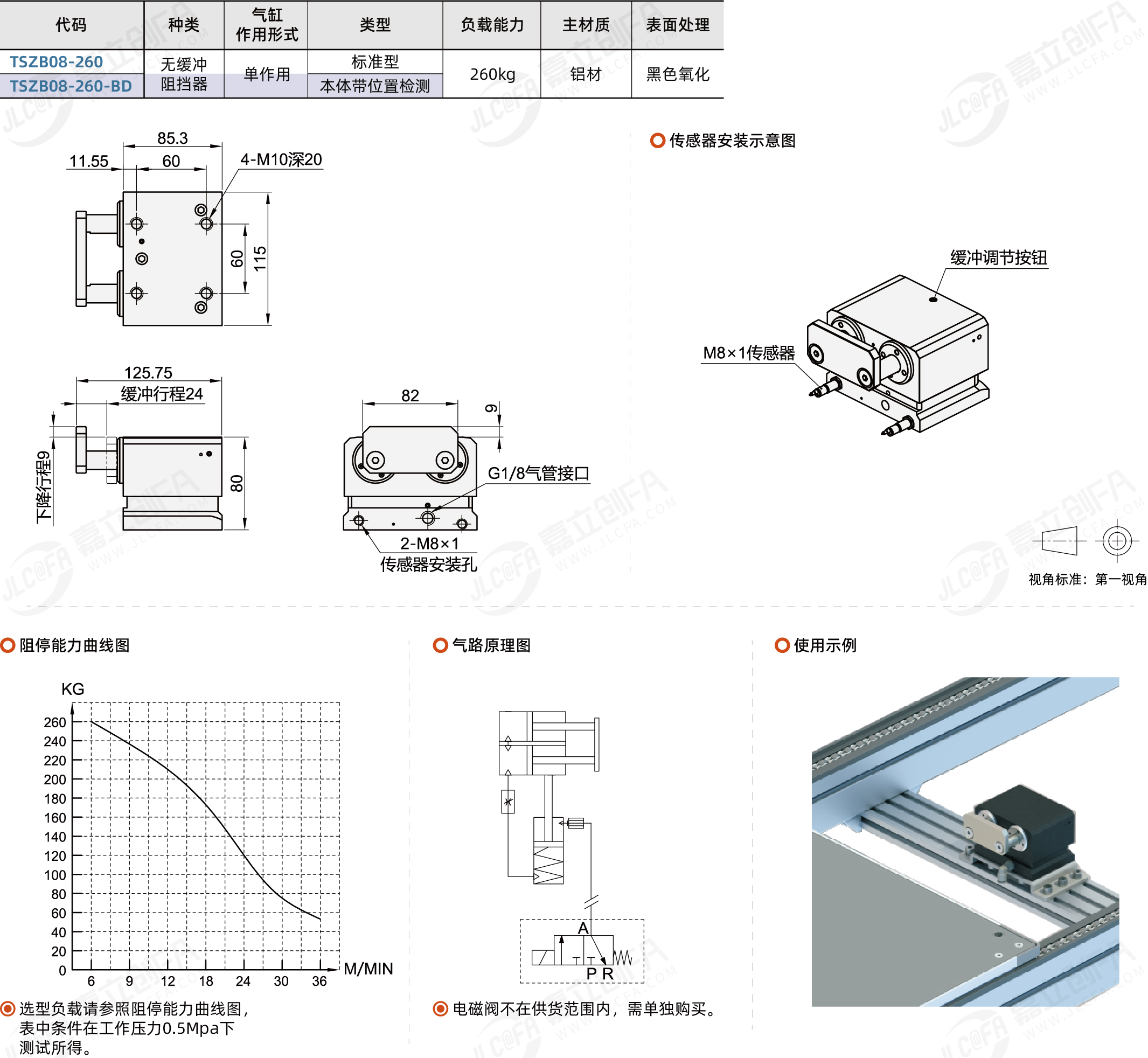 缓冲形式: 带缓冲负载能力: 260kg种类: 缓冲阻挡器是否适合锂电行业: 是否阻停放行: 表面处理: 黑色氧化材质: 铝材气缸作用形式: 单作用是否耐高温:
