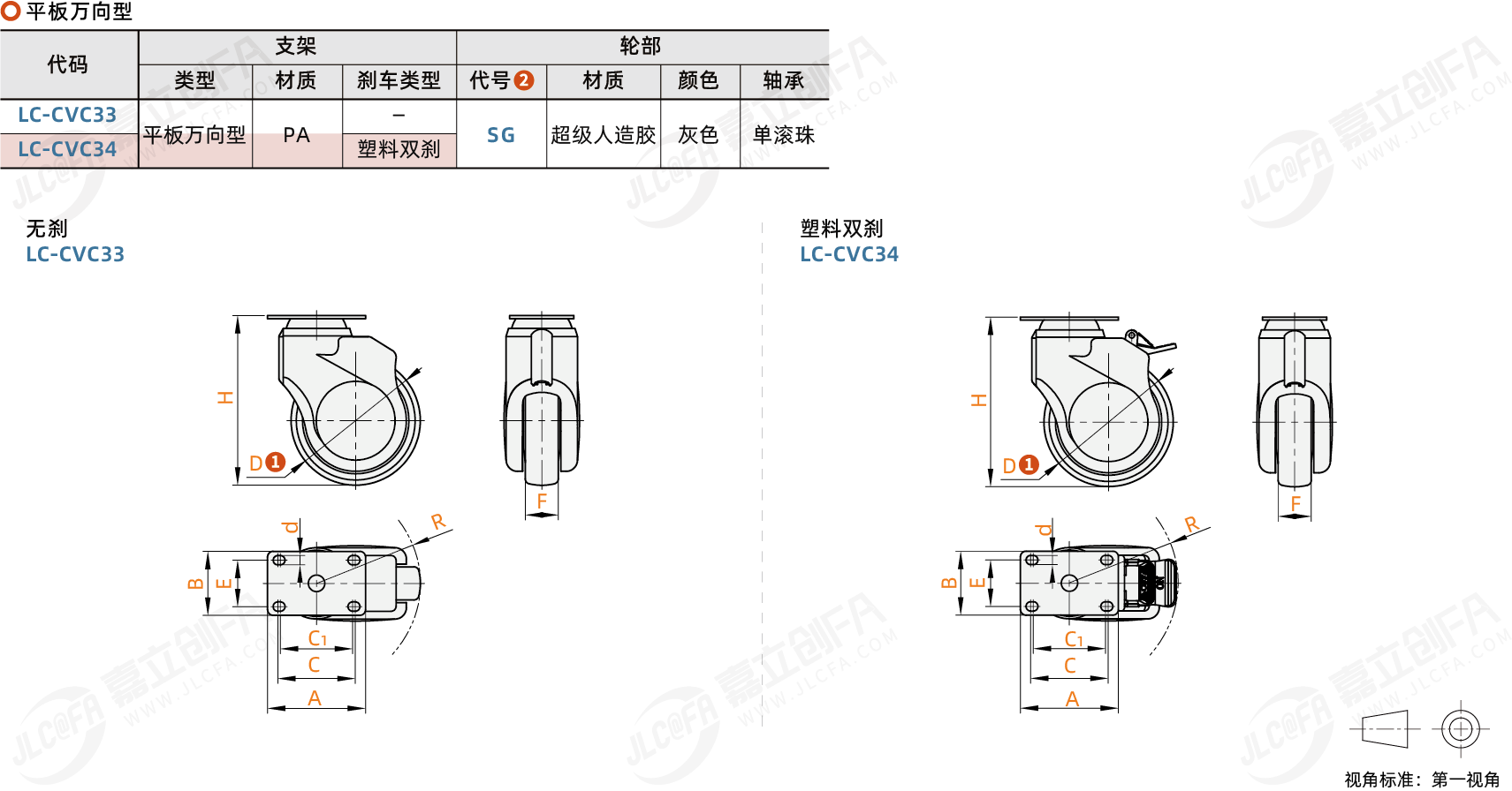 医疗系列包罩轮 容许载荷100~110kg 平板万向型