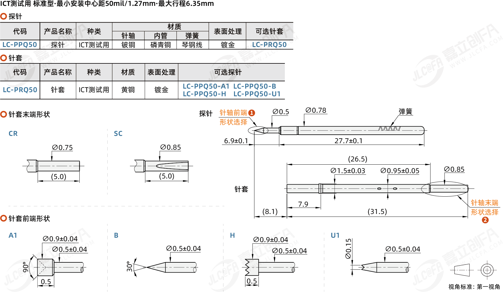 种类: ICT测试用类型: 标准型最小安装中心距: 50mil/1.27mm