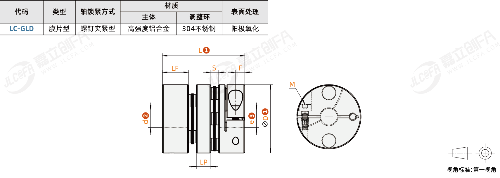 类型: 膜片型轴锁紧方式: 螺钉夹紧型主体材质: 高强度铝合金调整环材质: 304不锈钢表面处理: 阳极氧化