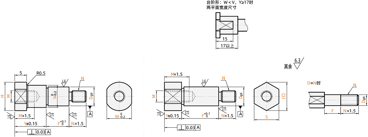 特点1:具有g6公差,能够和带轮、惰轮、链轮等配件精密配用。