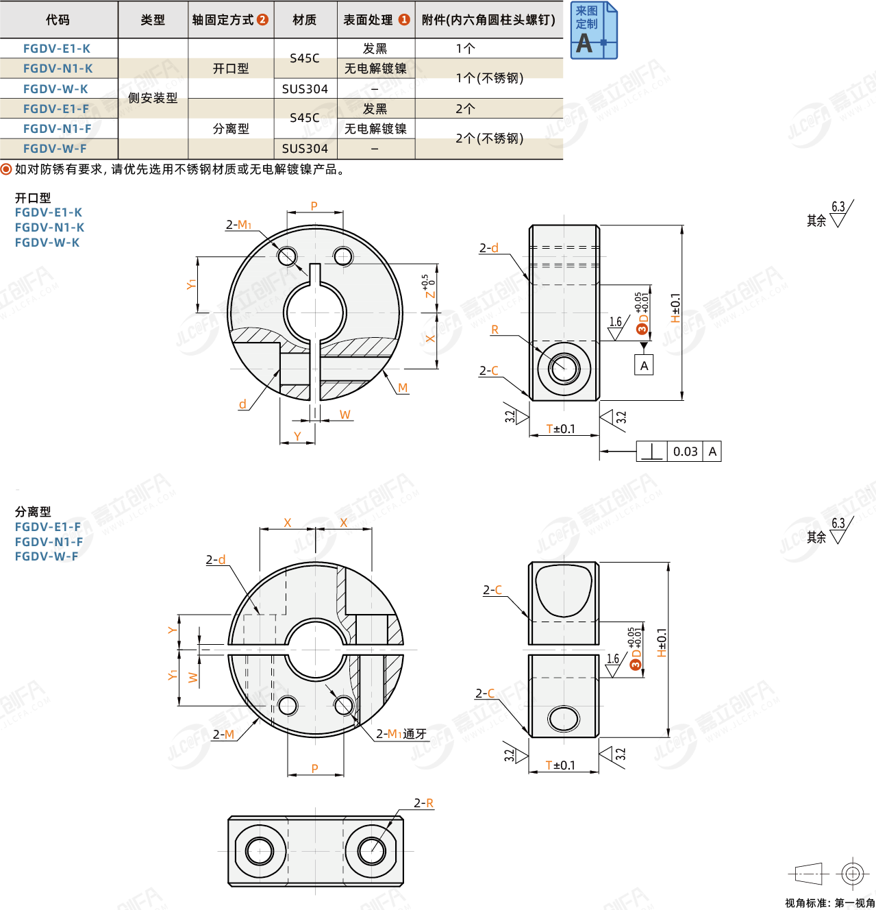 FGDV-E1-K | 侧安装型 | 开口型 | S45C | 发黑 | 1个 |