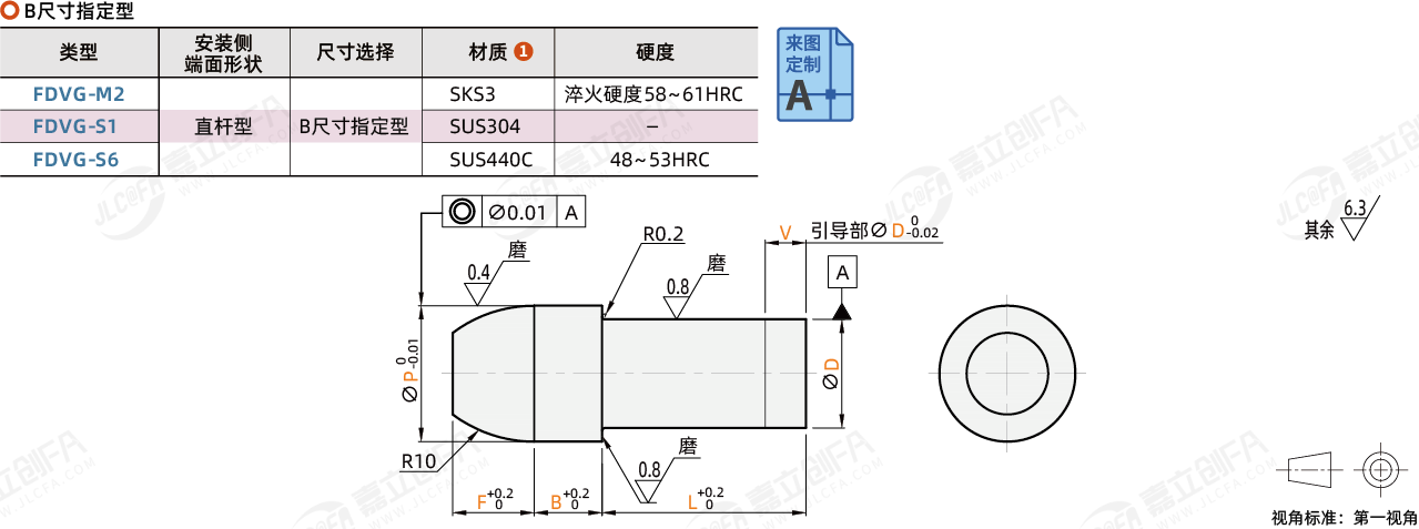 种类: 定位导销导入侧端面形状: 导入表面形状: 圆型安装侧端面形状: 直杆型尺寸选择: B尺寸指定型