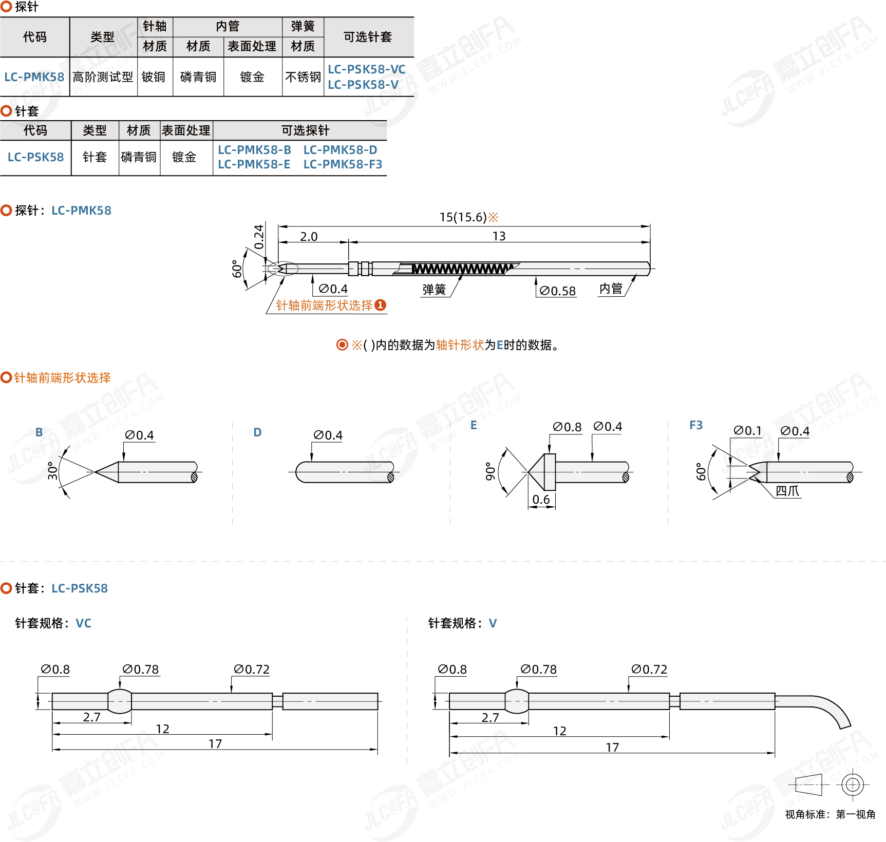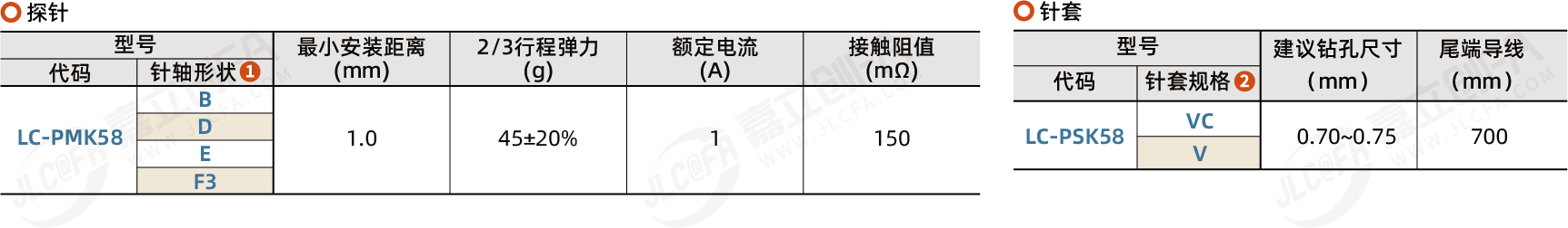 探针/针套 高阶测试型·最小安装中心距1.0mm ICT测试用