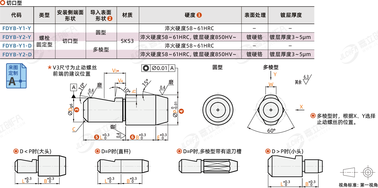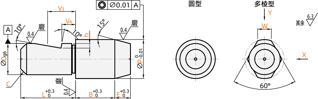 特点2:导入部为锥角形的标准类型。压入使用,可指定压入部公差:m6、p6、g6。