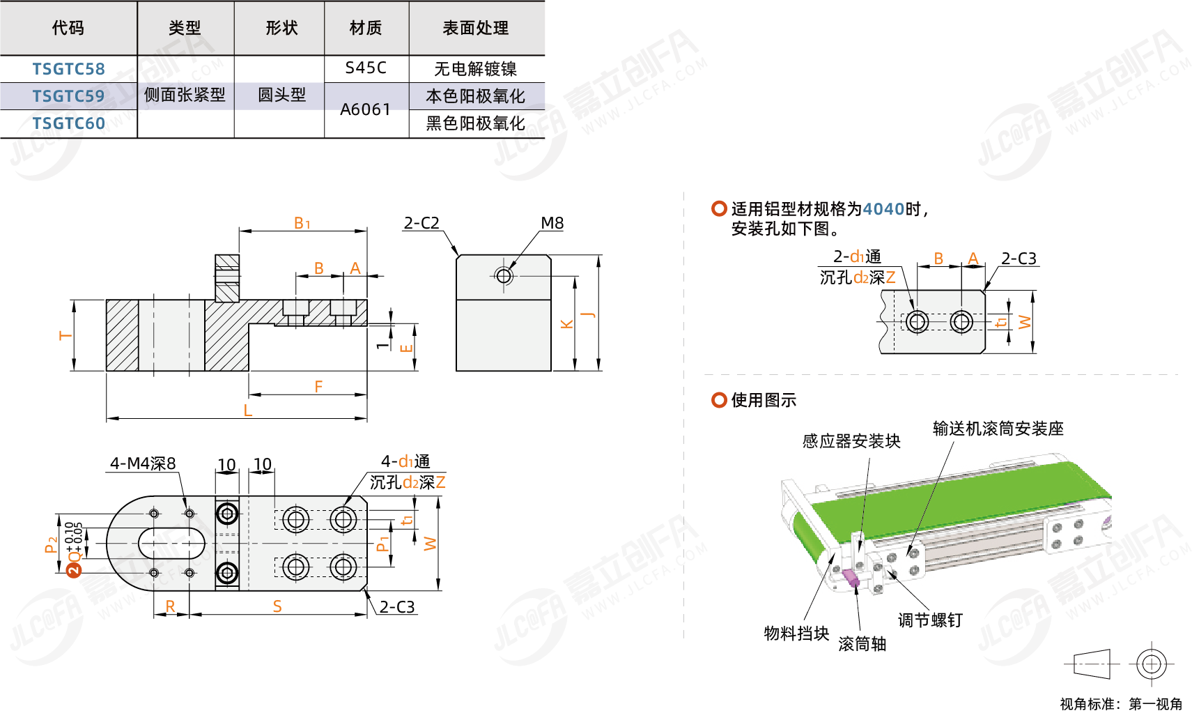种类: 输送滚筒安装座类型: 侧面张紧型形状: 圆头型安装孔方向: 内侧定位方向: 卡槽型