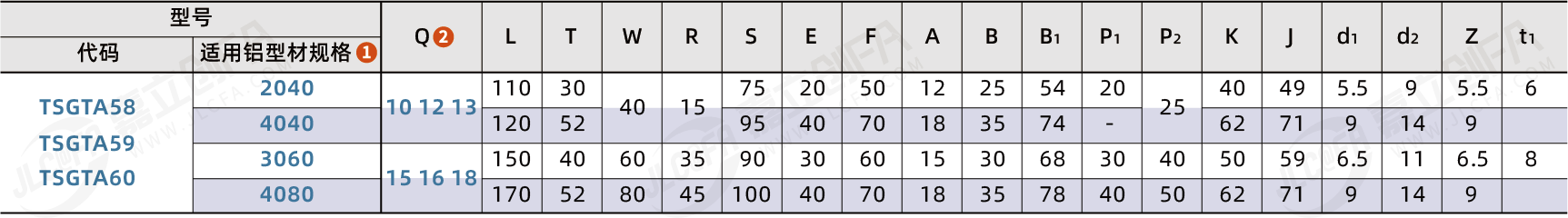 适用铝型材规格